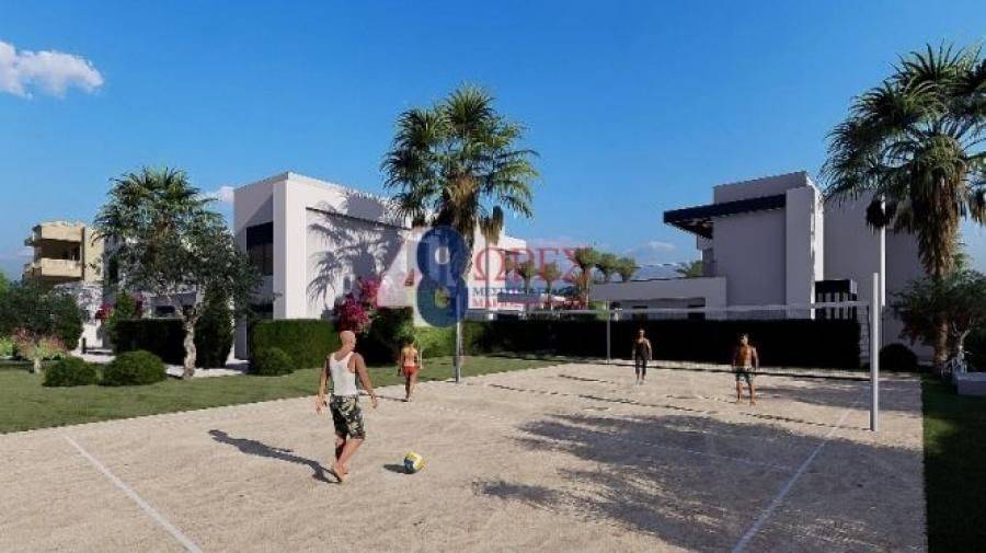 This is a complex taken from the future with an emphasis on quality, functionality and luxury. Regarding the interior, the spaces are developed with such a structure that the openings to all free sides ensure light and visual contact with the semi-outdoor spaces, while maintaining privacy. The ground floor level of 84 sq.m. it consists of a bedroom, a reception area, a single kitchen - living room and a bathroom, while the geometric openings to the common areas provide visibility and direct access to the semi-outdoor area of 62.80 sq.m. On the floor of 77.80 sq.m. we are transported from an internal staircase and meet the floor reception area three bedrooms one of which is a master room with private bathroom and another bathroom. On this level there is an extremely spacious balcony of 21.11 sq.m. overlooking the pool and recreation areas. The residence has its own garden, communal BBQ area, Beach Volley court, playground and ample parking. At the same time, it has a desalination and water treatment system, photovoltaic panels (PV panels) so that it produces its own energy from the sun, underfloor heating from the leading REHAU company, high quality air conditioning and ALUMIL electric frames. The unique character of the complex starts from the foundations in the construction of the property, where a thermal facade with special insulation on the foundations has preceded, while the construction company has chosen to work with the best companies in the area by installing kitchen furniture from the Italian company Scavolini and Italian quality tiles. The outdoor space has been designed in such a way as to offer a daily break from the fast pace of the city. One of its main features is the extremely well-kept garden, which is a key element of the configuration, thus harmonizing the complex with the natural landscape and the wet element, both in the landscaped pool recreation area and on the sandy beach, marked with a blue flag. It is certain that the complex contributes to the evolution of the ecological character of our island. With modern design, bioclimatic study, energy autonomy and low energy consumption, it is an excellent investment for modern families looking for a combination of luxury and energy efficiency, while helping the environment.