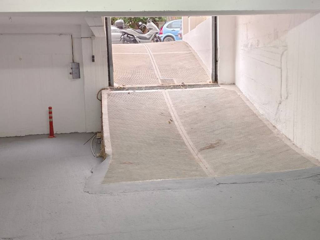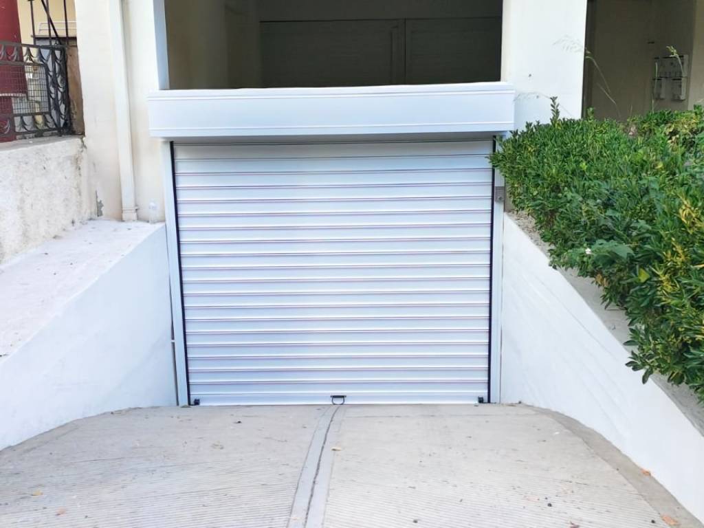 Θέση για μηχανή. Ηλεκτρική πόρτα, πυρόσβεση, κάμερες, φώτα με φωτοκύτταρα. Η τιμή είναι 165€ το τρίμηνο.