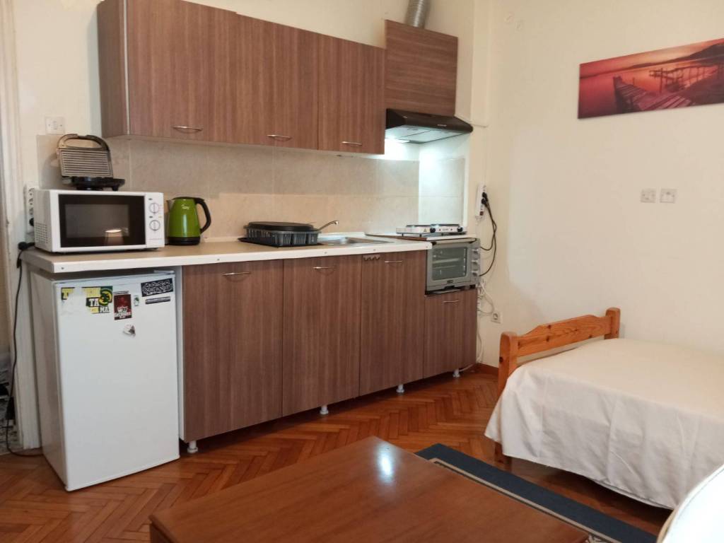 the studio is an indipendant part of a big apartment . it is fully furnished and equiped and consist of one big space . (see photos ) it has a kitchen ,a single bed, a wardrob and desk .it has a private bathroom (with shower\) .it has a balkoni that overlooks a garden . the rent is 300€/month + plus 50 € (fix)for electricity (up to 150kwh),water wi fi ,and building charges the deposite is set at (2) two months rent and (1)one rent payable in advance . it is suitable for only one person . it shares the main enterance of the apartment ,the coridors and the washing machine .
