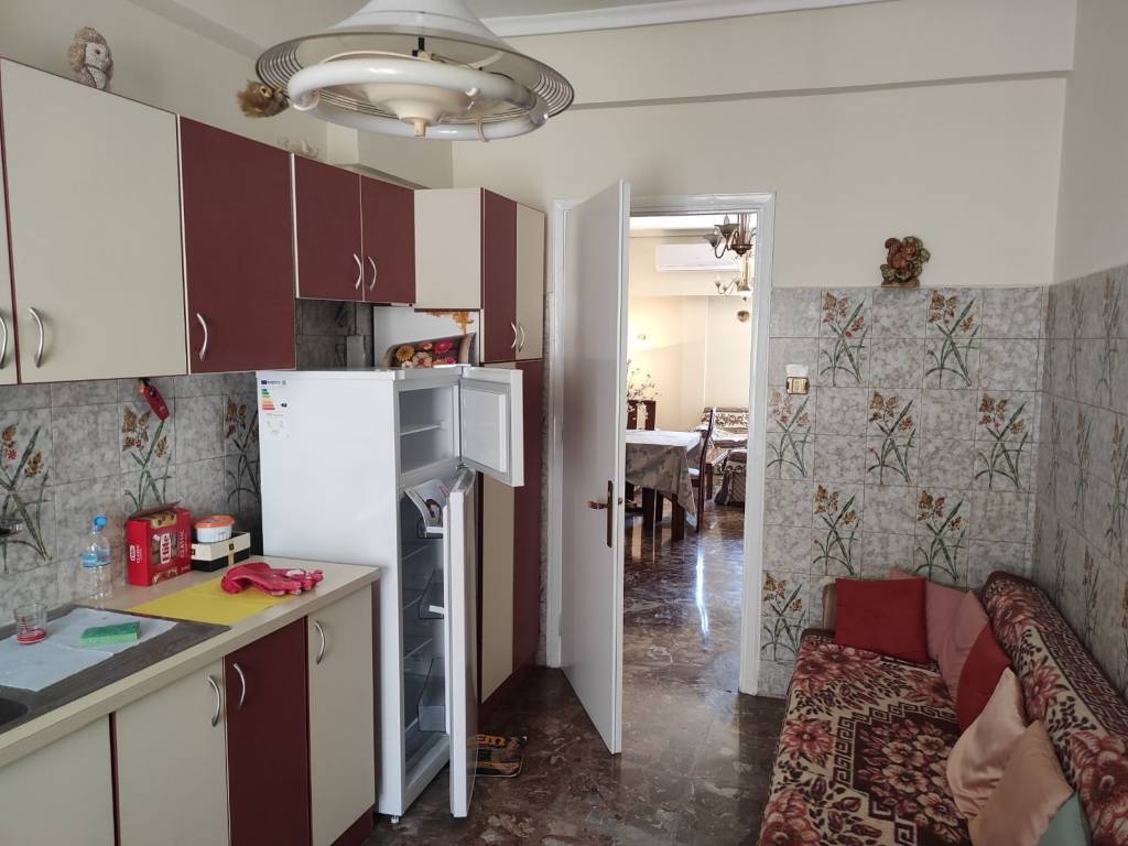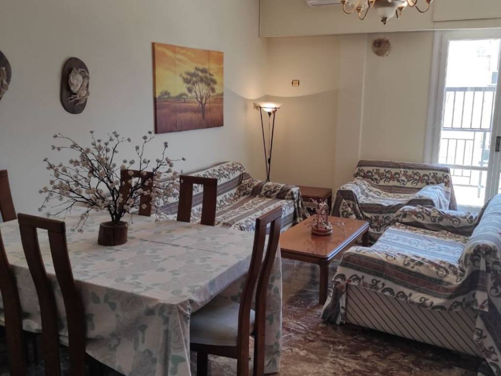 Διαμέρισμα 90τμ,6ος όροφος σε οικογενειακή πολυκατοικία,επι της Κορίνθου πλησίον στάσης τοπικού τραίνου και δίπλα σε στάση αστικού λεωφορείου. Επιπλωμένο, διαθέτει 3 καινούργια κλιματιστικά και θέρμανση με ηλεκτρ.θερμοπομπούς. Μερική θέα θάλλασσα. Χαμηλά κοινόχρηστα.