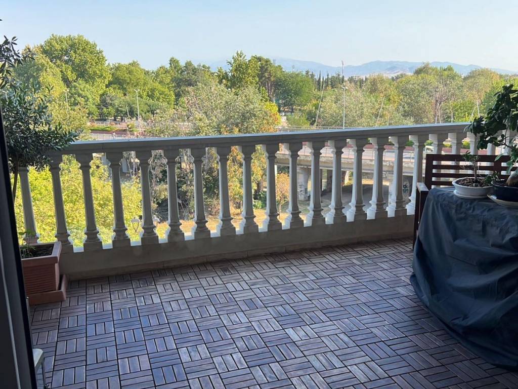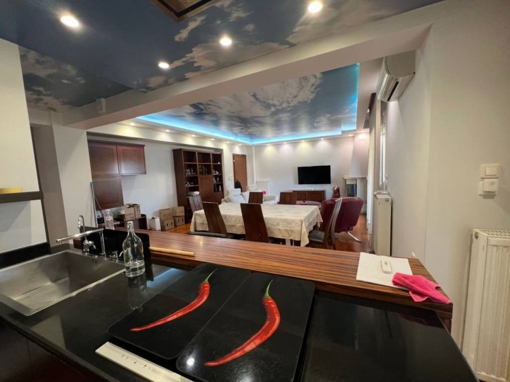 Luxurious, fully furnished and equipped house in the city center. Bright with unobstructed views front and back. Next to the most developed part of the Pinios River, close to supermarkets, schools, bus stop, market, cafes, restaurants & nightlife! The most ideal place to live in Larissa. It has three bedrooms with large closets, a living room, a dining room, a smart TV, an alarm system, 3 air conditioners, a dishwasher, an oven, a stove, a built-in fridge-freezer, a washing machine, a dryer, awnings in the front (electric) and back, a veranda with a wooden deck and a living room, pleated screens on all balcony doors, etc.It can comfortably accommodate a family or two students. In the basement of the apartment building there is a parking space with a private installation for an electric car or bicycle charger. Available from 21 of May.