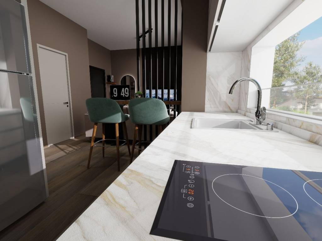 Premium Διαμπερές Studio με Περιμετρικά Ανοίγματα & Θέα στην Καλλιθέα Η Αρχιτεκτονική της Φωτεινότητας Στον 2ο όροφο του πιο σύγχρονου κτιρίου της οδού Παπανδρέου 10, αυτό το μοναδικό studio 35 τ.μ. (49 τ.μ. μικτό) ξεχωρίζει για τον σχεδιασμό του που θυμίζει πολυτελή σουίτα ξενοδοχείου. Χάρη στον προσανατολισμό και στα μεγάλα περιμετρικά κουφώματα, το διαμέρισμα λούζεται με φυσικό φως, προσφέροντας μια σπάνια αίσθηση ανοιχτού ορίζοντα. Είναι διαμπερές και έξυπνα μελετημένο ώστε να δημιουργούνται τρεις άνετοι χώροι διαβίωσης: Σαλόνι, Κουζίνα και Υπνοδωμάτιο, χωρίς τους περιορισμούς ενός τυπικού studio. High-End Υλικά & Ξενοδοχειακό Design Η προσοχή στη λεπτομέρεια κάνει τη διαφορά: Κουζίνα: Custom σχεδιασμός με επένδυση μαρμάρου στον πάγκο και την πλάτη. Μια επιλογή πολυτέλειας που αναβαθμίζει αισθητικά όλο τον χώρο και προσφέρει διαχρονική αντοχή. Μπάνιο Hotel Style: Ένα μπάνιο υψηλής αισθητικής, απαλλαγμένο από ογκώδεις συσκευές (χωρίς πλυντήριο), σχεδιασμένο αποκλειστικά για χαλάρωση με προδιαγραφές πεντάστερου ξενοδοχείου. Θέα & Ανοίγματα: Τα μεγάλα ενεργειακά ανοίγματα (PVC με τριπλά τζάμια) ενσωματώνουν τη θέα στο εσωτερικό και οδηγούν στα μεγάλα μπαλκόνια, επεκτείνοντας τον ζωτικό χώρο προς τα έξω. Κορυφαία Τεχνικά Χαρακτηριστικά Εξωτερική θερμομόνωση 10cm για απόλυτη προστασία. Κλιματισμός: Αυτόνομη Αντλία Θερμότητας με fan coil (Ψύξη/Θέρμανση). Ζεστό Νερό: Ηλιακός θερμοσίφωνας Υψηλής Απόδοσης σε συνδυασμό με την Αντλία Θερμότητας. Ηχομόνωση: Στις μεσοτοιχίες και στα δάπεδα για απόλυτη ησυχία. Extra Παροχές: Μεγάλη αποθήκη 12 τ.μ. στο υπόγειο με απευθείας πρόσβαση μέ ασανσέρ. Τοποθεσία Σε προνομιακό, υπερυψωμένο σημείο στην Καλλιθέα Αλεξανδρούπολης, με Νότιο προσανατολισμό. Ένα κτίριο 5 κατοικιών που εγγυάται ιδιωτικότητα και ποιότητα ζωής. Οι εικόνες παρουσιάζουν μια αρχιτεκτονική πρόταση διαρρύθμισης που αναδεικνύει τις δυνατότητες του χώρου. Για περισσότερες πληροφορίες, είμαστε στη διάθεσή σας να προγραμματίσουμε μια συνάντηση ή να σας υποδεχτούμε στο γραφείο μας για μια αναλυτική παρουσίαση.