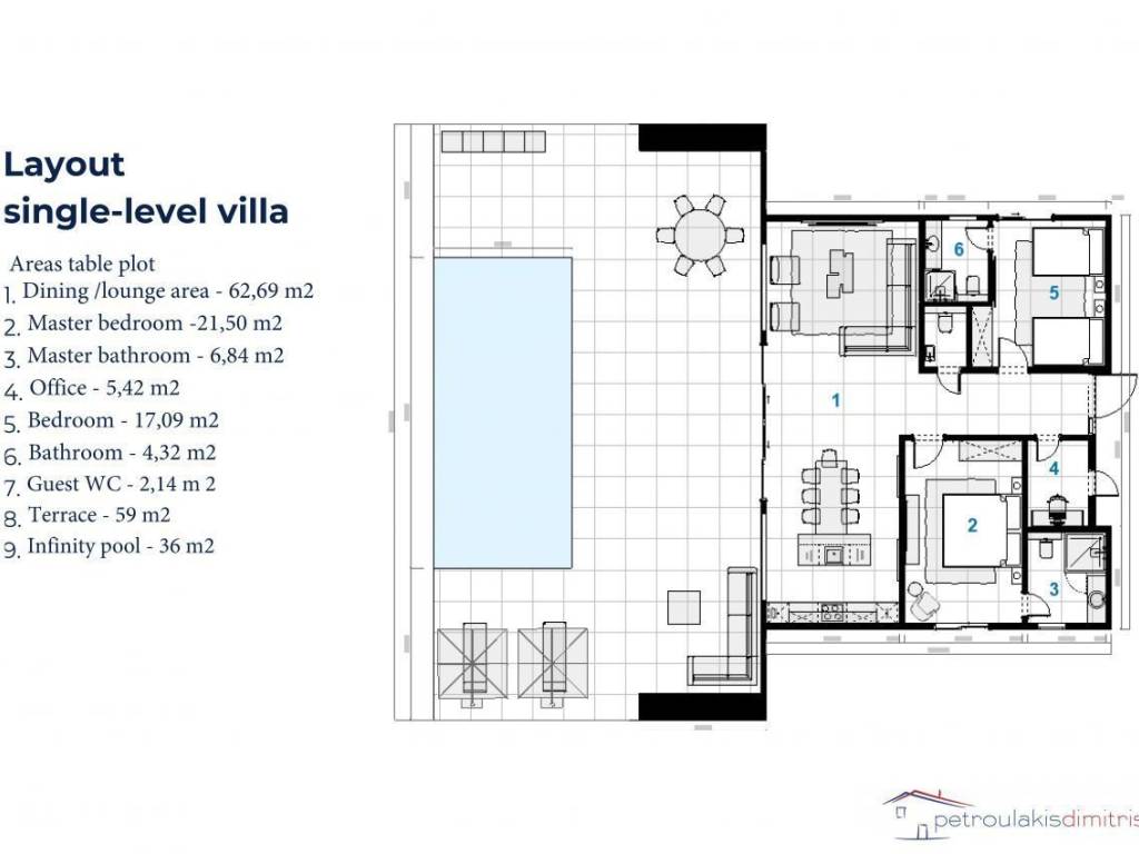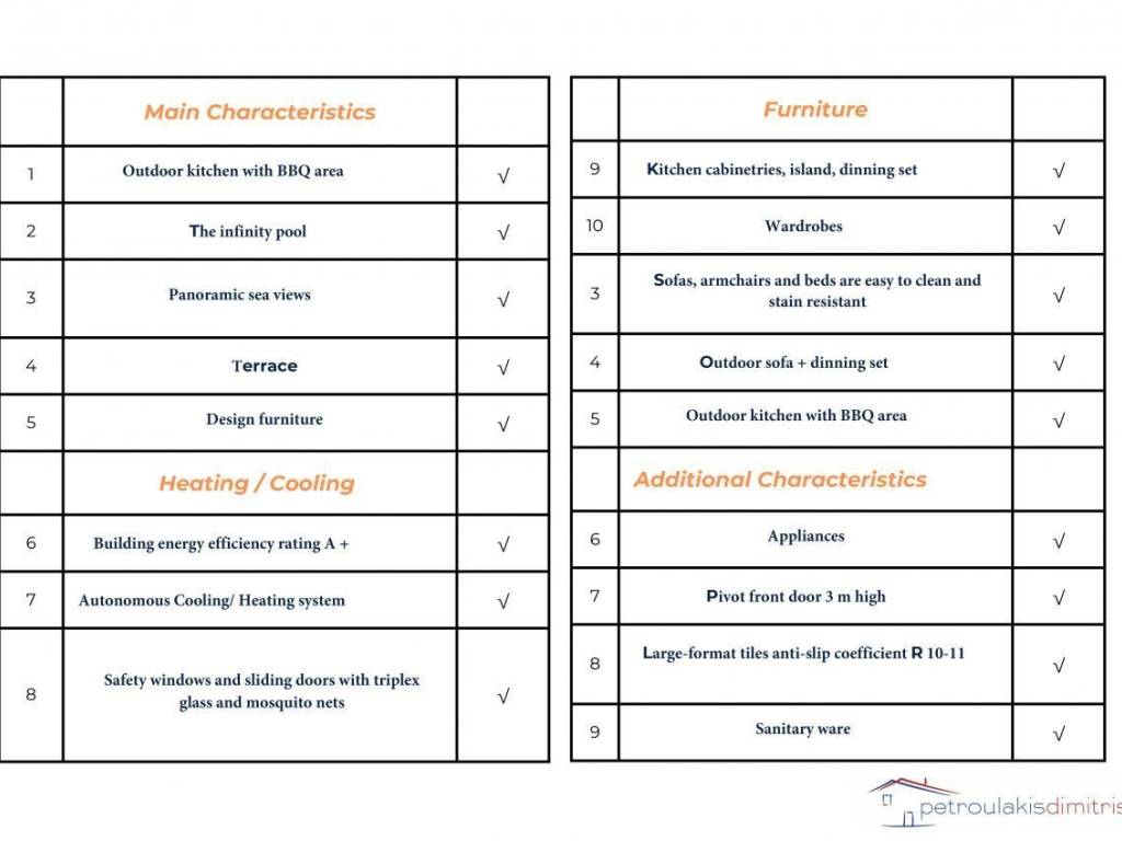 For Sale: Newly built villa of 120 sq.m. with swimming pool in Kefalas, Apokoronas. This is a luxurious property of energy class A+, consisting of a living room, kitchen, 2 bedrooms each with its own bathroom, an office, and a WC. The veranda is 59 sq.m., and there is an infinity pool of 36 sq.m. along with an outdoor kitchen. The villa’s plot is 624 sq.m., featuring parking spaces and a garden. The property is fully furnished and equipped with electrical appliances. It has independent cooling-heating via an electric heat pump. It offers sea views and is located just 1,500 m from the beach. Delivery: March 2026 Sale Price: €645,000 Property Code: 1801 Brokerage Fee 2.5% (VAT included) More properties www.petroulakis-realestate.gr Petroulakis Dimitris - Real Estate Agency 22 Voloudakidon str., Chania, Crete, Greece petroulakis.dim@gmail.com Tel.: +30 2821044455 Mob.: +30 6946284629 / +30 6977220559 In order to see the property, it is necessary to have your ID or Passport according to Law 4072 / 11-4-2012 Government Gazette 86A