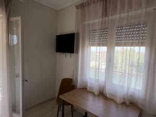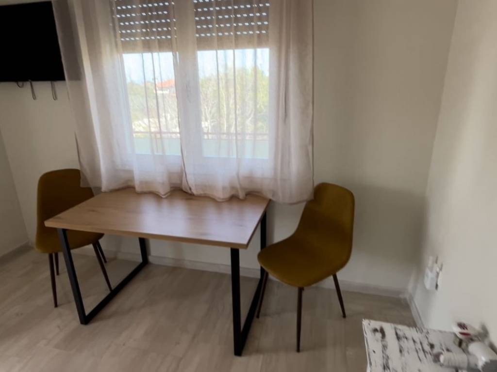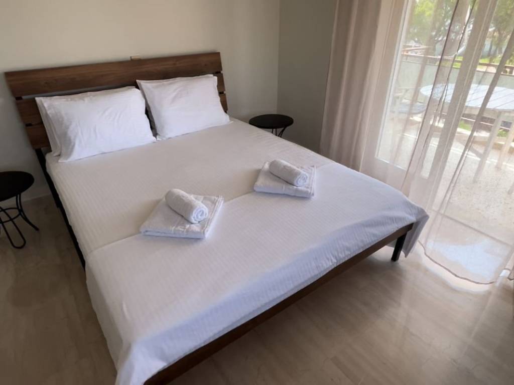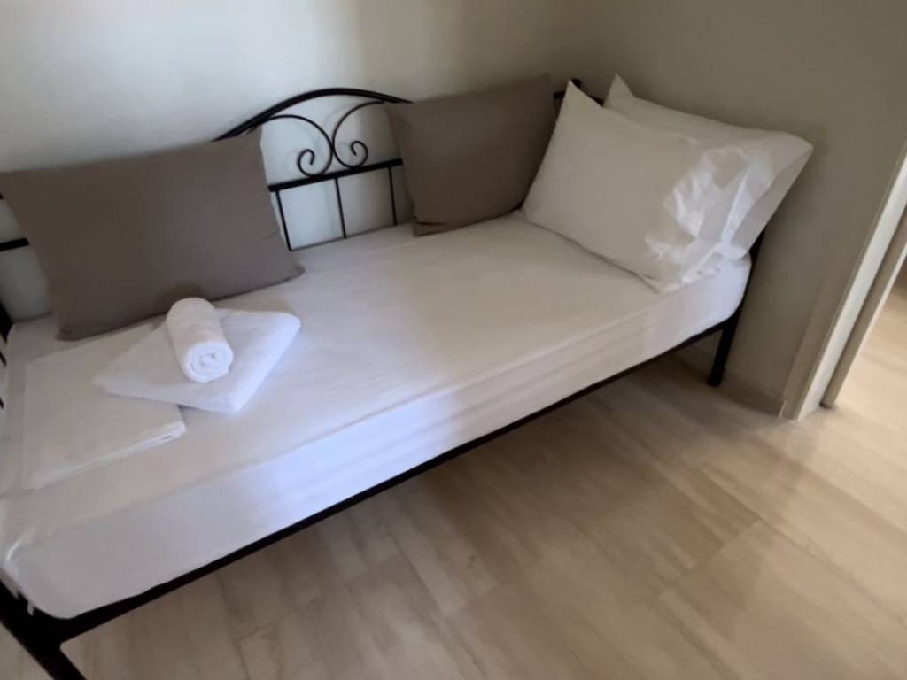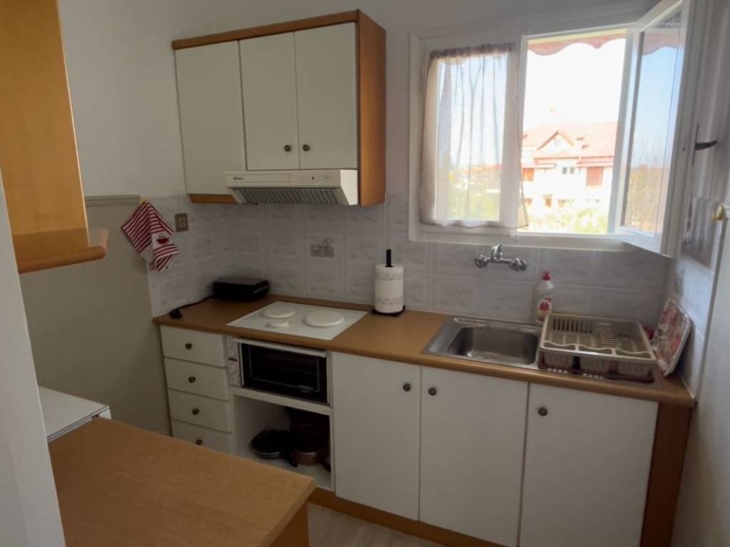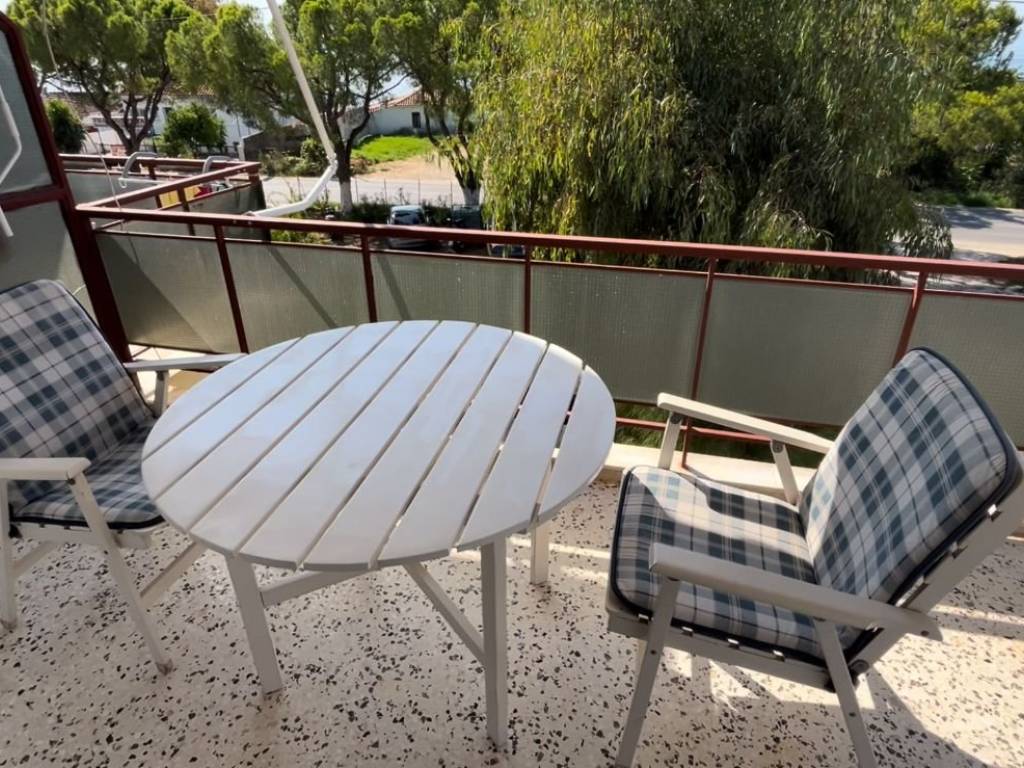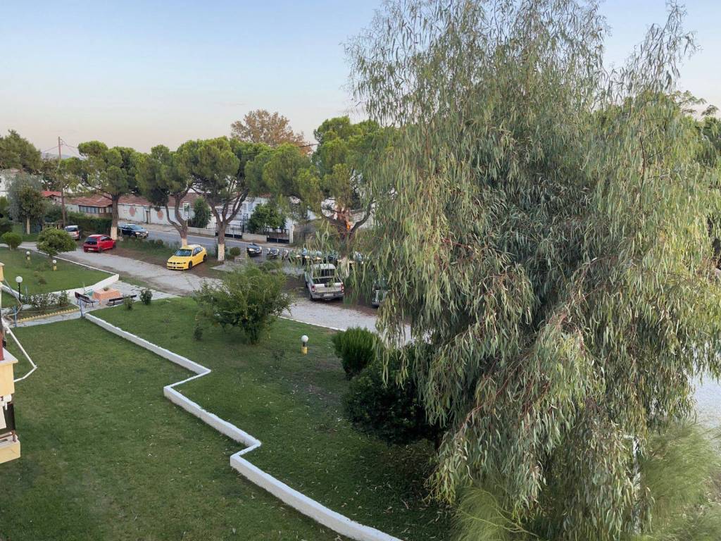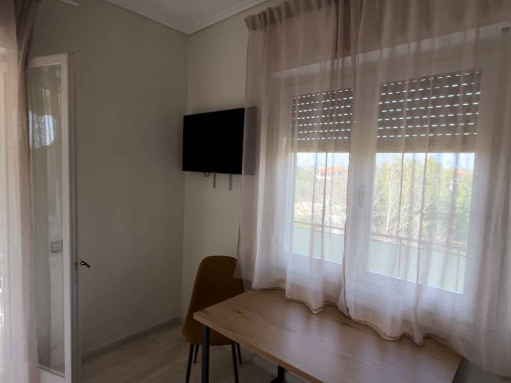 +30 6982168867 (Thanasis, afternoon and evening hours) Spacious studio flat in Malaki, next to the KTEL coach stop. With space for parking cars. It consists of a main room, kitchen, bathroom, and a large hallway that comfortably fits a sofa-bed, as you can see from the photos. The main room, has a queen size bed (160cm x 200cm), and the hallway, a full size single bed (100cm x 200cm) that doubles as a sofa. It has solar water heater, air-conditioning (cool and heat) and an electric oil-radiator for heat. A very large corner balcony (approx 20sq m). A south-west aspect, with sea views to the South and stunning sunsets behind the mount Pelion to the West. This orientation is the best for all day long natural warmth from the sun in the winter (when the sun is low on the horizon), and avoiding the heat in the summer (when the sun is high on the horizon). It also has awnings on both aspects for extra shade on the balcony in the summer. The supermarkets MyMarket and AB Vassilopoulos deliver to Malaki, as may some other ones. The loveliest souvlaki and grilled meats can be ordered and delivered from Edesma in the nearby village of And Lehonia for dinner in the evening (except Sundays) and mouthwatering home cooked food and grilled meats from Saghanis in Kato Lehonia for lunch at noon. Even though the flat had a fully equipped kitchen with a large mini oven with three hobs, grill and oven function (unfortunately not fan assisted). The rent is 280€ per commencing month for annual contracts.