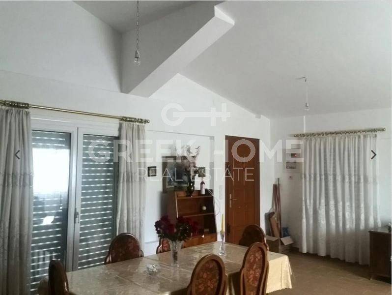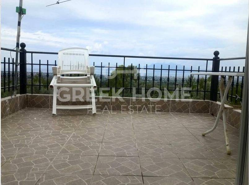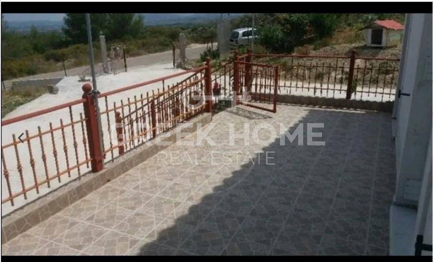 Velo, Ellinochori - Detached House 126sqm plot 40000sqm, fully furnished, bedrooms 3, levels 2, ground floor - 1st, excellent condition, year built 1983, renovation year 2015, energy class B+, living room, kitchen, bathroom, wc, heating type: autonomous (stove), parking, quiet, dual aspect apartment, luminous, unobstructed view, frontage, storage space, solar heater, balconies, large balconies, balcony 50sqm, garden, private terrace, aluminum frames, double glazed windows, door screen, ceramic tiles floors, separate kitchen, without common charges, secure door, internal staircase, east-southern orientation.