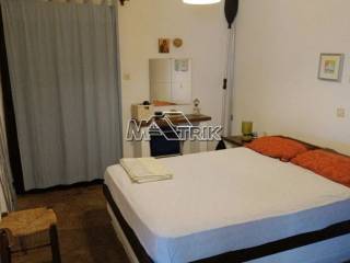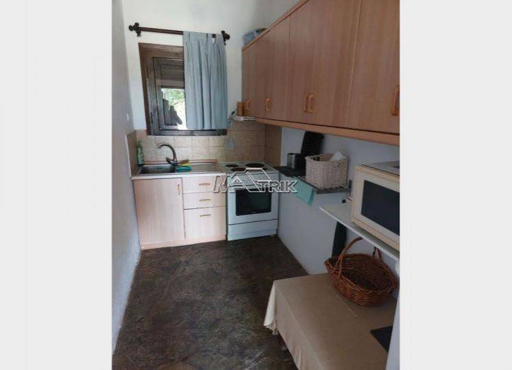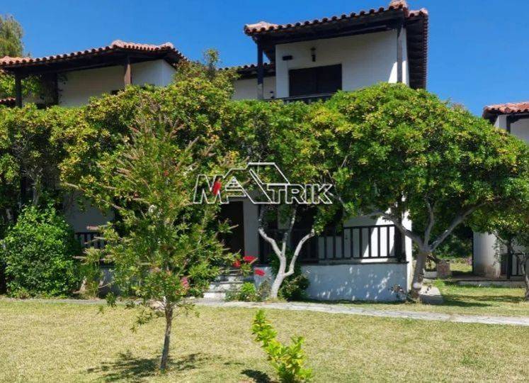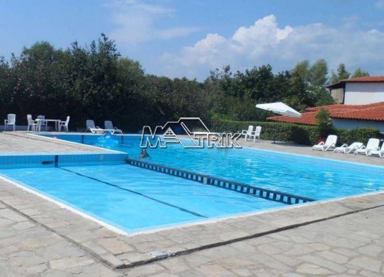 Metamorfosi, ground floor apartment (three stairs upwards), 50 sq m, within a well-maintained residential complex, 800 m from the village and the market area and just 200 m from the sea. The apartment consists of one livingroom, one bedroom, a kitchen and a bathroom with shower. The property has stone floor (and tiled floor in the bathroom), wooden frames, shutters and an exterior door as well as a wooden roof over the terrace. The complex has a shared swimming pool (16 m x 8 m), a children's pool, football field, large common areas, year-round security and a garden caretaker. The apartment is in working order. It is a very good choice as a holiday home. It is also recommended for tourist development, offering a very satisfactory return on capital.