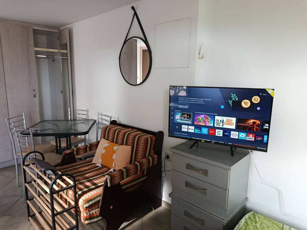 In a quiet area, Metallion and Maistrou Azolimnos, it is furnished with a double bed, a table with 4 chairs, a wardrobe, kitchen cabinets and an extractor hood, it is a 4-minute walk from the beach, it is fully equipped with a refrigerator, kitchenette, washing machine, air conditioning, autonomous heating and solar water heater, TV 32``smart, available and for long-term rental, immediately available, 20/***/*******,smoking and pets are not allowed.