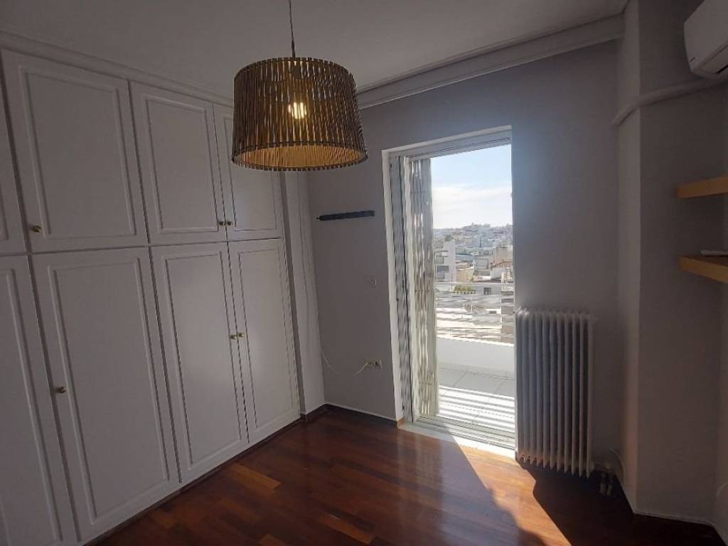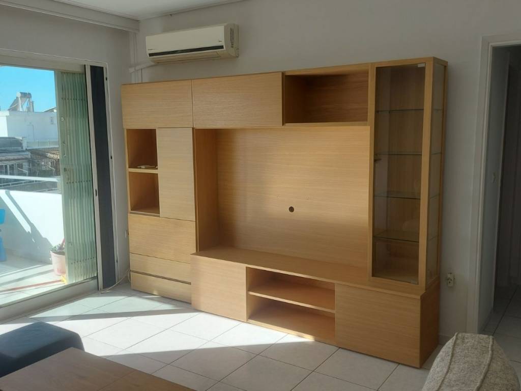 Bright and warm, furnished apartment for rent, together with underground parking space within the building (optional); 6th floor. South direction, with an excellent view to the sea, from Ymittos to Kastella. Area: Nea Smyrni, very near to Nea Smyrni square (500 meters) and Syngrou Avenue where all buses pass (120 meters). Easy access to schools, medical/diagnostic centers, near to trams, Grove, market, sports and cultural sites. Luxurious construction. Quiet area, near the Police station. Ideal for a family with 1 child, for home/office, working from home or two housemates. Area 69 sq.m., consisting of 2 bedrooms, 1 bathroom, 1 single living room-kitchen area. Built in 1994, renovated in 2023, painted August in 2025. Autonomous heating with natural gas. 3 air conditioners (in the living room and 2 rooms), solar water heater are included. On the balcony doors it has aluminum frames with double glazing, screens and folding security bars. The floors are tiled in living room, kitchen, bathroom and permanent wooden parquet in the bedrooms. It has the following features and advantages: 3 balconies, Awnings, White Electr. Appliances (fridge and kitchen), security door, Intercom. All furniture is special constructions, specifically for the space. Minimum lease term 12 months. Available immediately. Price: €1000 along with parking (optional); 2 months warranty. Local Brokers only, if they have an eligible candidate.