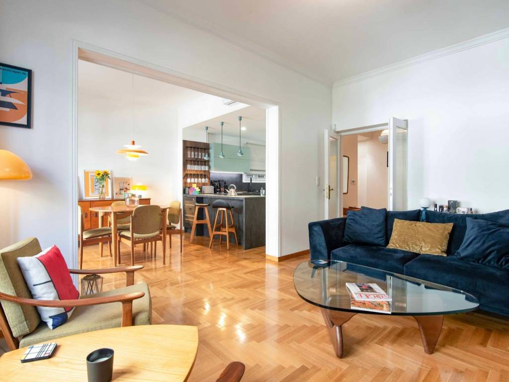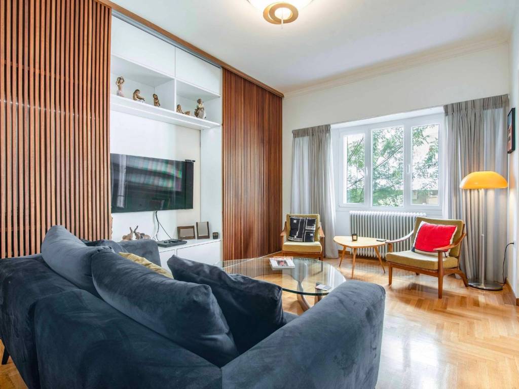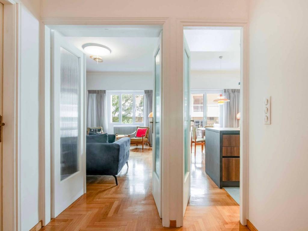Situé au troisième étage d'un immeuble résidentiel athénien intemporel datant de 1958, ce logement de 98 m² allie harmonieusement charme classique et confort moderne. Entièrement et luxueusement rénové en 2023, l'appartement respecte le caractère d'origine de l'immeuble tout en intégrant une esthétique architecturale de haute qualité et une technologie de pointe. La rénovation met en valeur l'aura des années 1960, complétée par une décoration avec des meubles danois authentiques inclus dans la vente. L'aménagement comprend : * 2 chambres spacieuses avec des placards faits à la main sur mesure * 2 salles de bain élégantes * Un salon et une salle à manger ouverts avec une cuisine moderne entièrement équipée * Un débarras séparé, actuellement utilisé comme buanderie Chaque détail a été soigneusement choisi en utilisant des matériaux de haute qualité, créant une atmosphère raffinée et accueillante. La propriété s'adresse aussi bien aux investisseurs qu'aux particuliers désireux de vivre une agréable expérience athénienne dans le quartier d'investissement le plus prometteur de la ville. Avec une variété de cafés-bars et de restaurants à proximité, y compris le magnifiquement rénové « Green Park Garden Restaurant », l'appartement est à quelques pas du Pédion tou Areos, le plus grand et le mieux entretenu parc urbain au centre d'Athènes, qui couvre environ 27,7 hectares et constitue un espace vert et de loisirs important pour la ville. Idéalement situé, à l'écart des rues principales animées, à quelques mètres de la station de métro Victoria, à proximité du Musée Archéologique National, du bâtiment récemment rénové Minion et du futur Musée de la Technologie de l'OTE, c'est un emplacement exceptionnel pour profiter de l'effervescence de la ville et explorer tous les aspects de la vie urbaine dynamique d'Athènes, avec la possibilité de se retirer dans le calme et la tranquillité. Offert entièrement meublé et prêt à emménager – avec les clés en main. Emplacement : Le quartier de la Place Victoria est situé entre les quartiers Polytechnique, Place Vathis, Omonia, Musée, Champ de Mars, Gare de Larissis, Saint Paul et Saint Panteleimon. Caractéristiques uniques : Victoria est à proximité du centre d'Athènes et est un quartier avec plusieurs places et lieux de rencontre qui lui confèrent de la vitalité. À proximité se trouvent l'Université d'économie d'Athènes et le Champ de Mars, le plus grand parc public d'Athènes, qui abrite également le théâtre Alsos. Accessibilité : La zone Place Victoria ou Kyriakou est desservie par les stations de métro Victoria, Omonia, Gare de Larissis, ainsi que par de nombreuses lignes de bus et de trolleybus. Dynamique d'investissement : Cette zone est située en plein centre d'Athènes, une région qui suscite toujours un grand intérêt de la part des acheteurs. Rendements garantis de l'investissement.