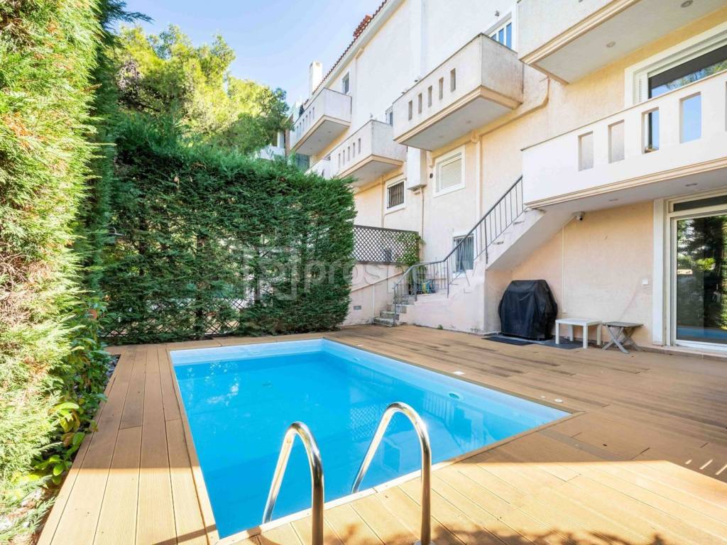 In a quiet and at the same time extremely privileged location of Nea Penteli, a high-standard maisonette is offered for sale, extending over four levels, with modern architectural aesthetics, functional layout and private swimming pool with perimeter deck. Detailed Description of Spaces: Lower Level (pool access): Bright, single multi-purpose space — ideal for an office space or living room, with direct access to the pool area and the beautifully landscaped deck. On the same level are a spacious storage room, the elevator canopy, ample storage spaces (wardrobes) and a full bathroom. Next Level: Spacious living room with comfort and brightness, small functional kitchen, one bedroom and guest W.C. Ground Floor: Large open and extremely bright living-dining room, directly connected to the main kitchen, which is ergonomically designed and fully equipped. First Floor: Includes a master bedroom with private bathroom and two additional bedrooms served by a central bathroom. Additional Features: -Independent natural gas heating -Elevator serving all levels -Double energy-efficient windows -Excellent quality construction materials -Private swimming pool with wooden deck around the perimeter -Bright and functional spaces with ideal orientation Location in a quiet neighborhood, with easy access to main roads and natural surroundings https://marketplace.theprosperty.com/listings/14351 ☎️ 210 6812500