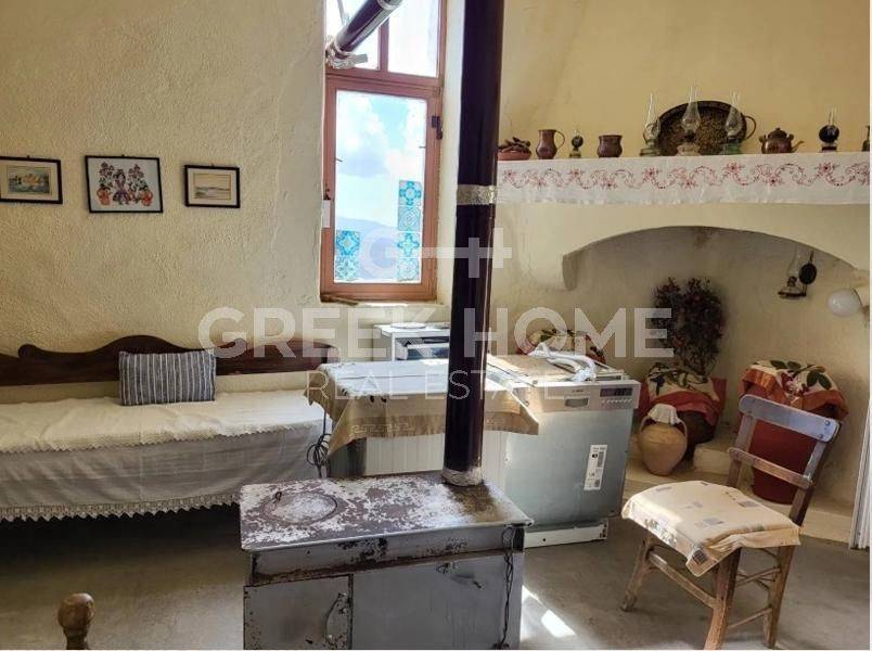 Rouvas, Gergeri - Detached House 163sqm plot 500sqm, partially furnished, bedrooms 3, levels 1, ground floor, very good condition, energy class D, living room, hall, kitchen, bathroom, wc, heating type: autonomous (wood), parking open space, quiet, luminous, mountain view, frontage, storage space, fireplace, balconies, loft storage, garden, wooden frames, door screen, ceramic tiles floors, without common charges, pets allowed, investment property.