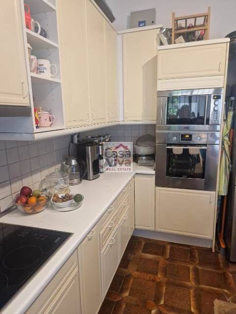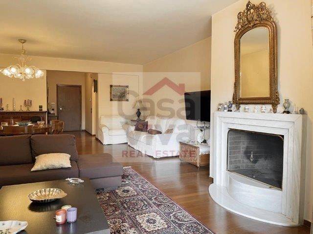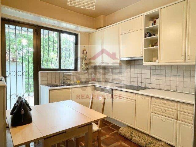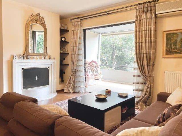 ΚΗΦΙΣΙΑ Νέα, Εξαιρετική θέση, διαμέρισμα 130 τ.μ., 1ου ορόφου, κατασκευής του 1985, μερικώς ανακαινισμένο, προσόψεως, φωτεινό, διαμπερές, με μεγάλες βεράντες και θέα πράσινο, ωραίο σαλόνι με τζάκι, δρύινα δάπεδα παντού, χώρος τραπεζαρίας, ανεξάρτητη κουζίνα με εστίες- φούρνο και πλυντήριο πιάτων, 3 άνετα υ/δ, 1 μπάνιο, wc, αυτονομία θέρμανσης, ηλιακός, κλιματισμός, διπλά τζάμια, συναγερμός, πόρτα ασφαλείας, τέντες, αποθήκη, 1 θέση υπόγειο πάρκιν, μεγάλος κοινόχρηστος κήπος., τιμή 450.000€ (1151).