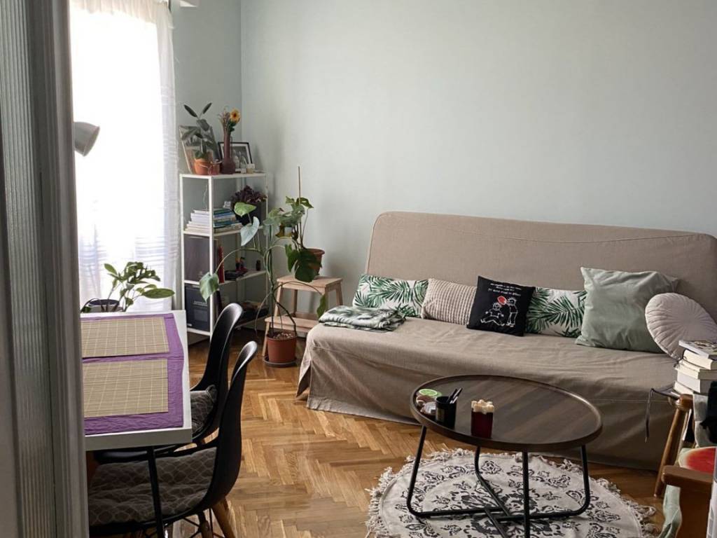 Built in 1980, the apartment showcases the timeless quality of that era, beautifully captured in the accompanying photos. Inside, the home features two cozy bedrooms, a welcoming living room, a functional kitchen, and a well-appointed bathroom. The mosaic-wood flooring adds warmth and elegance, creating an inviting atmosphere for residents and guests alike.