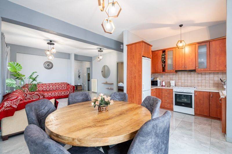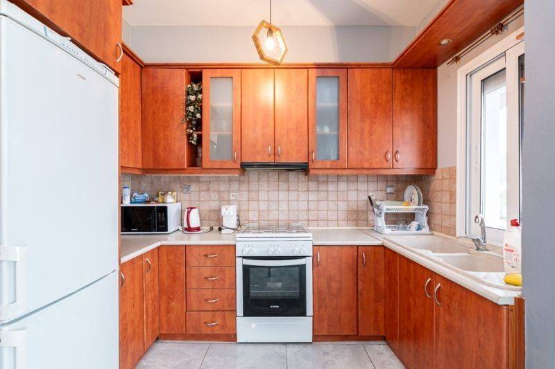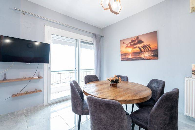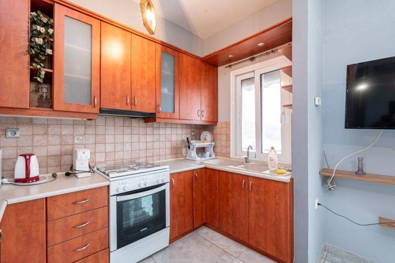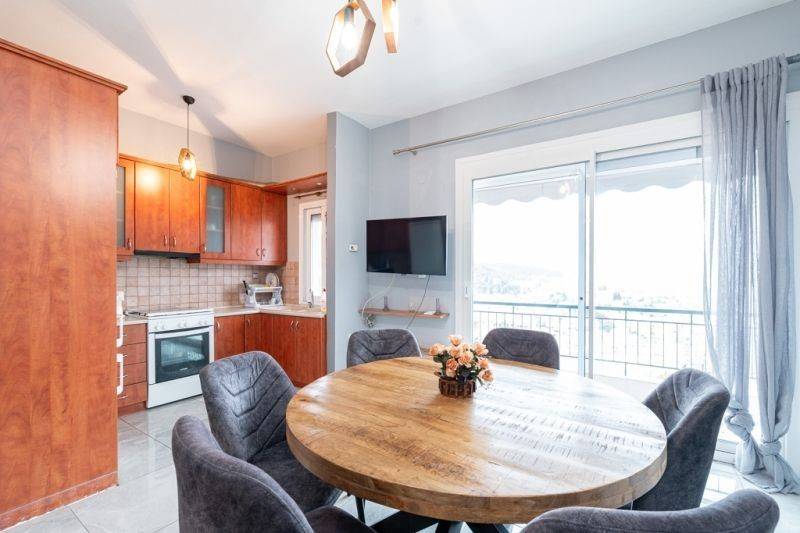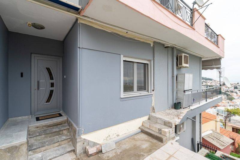 A 91.00 m² apartment is for sale in the area of the ring road, with a unique view of the bay of Kavala, due to the elevation difference of the plot. The apartment is located in a 4-story building, on the ground floor, but due to the difference in elevation, it has a view almost like a fourth floor and is completely renovated. The property has two comfortable bedrooms, a spacious living room-dining room-kitchen area and a bathroom, PVC window frames, external thermal insulation, a security door, air conditioning, solar water heater, awnings, window screens, and independent heating via oil boiler. The building is located in a very accessible area with convenient parking. The property is a particularly interesting proposition for either permanent residence or investment use. To view the property, you will need to present your police ID.