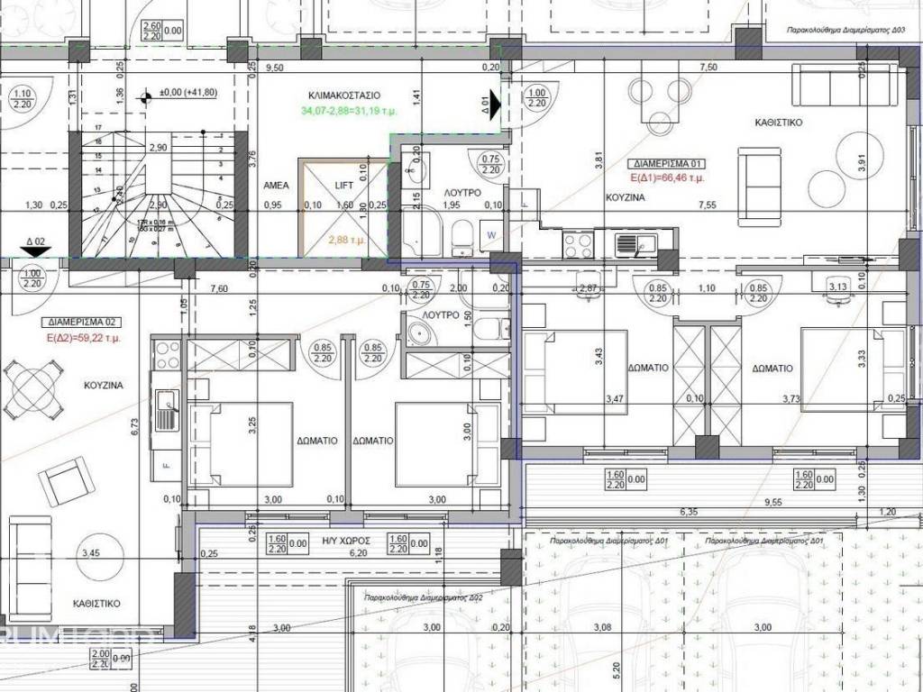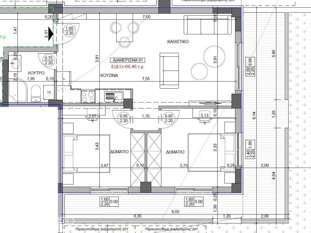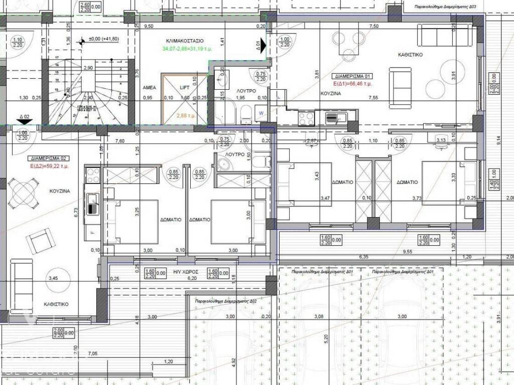 Thermi for sale newly built apartment 74.81 sq.m. with net 66.46 sq.m., luxurious construction, ground floor with garden for exclusive use, energy class A+. It consists of a living room, kitchen, two bedrooms with verandas and bathroom, storage room and parking space. Excellent construction with the new anti-seismic regulation, with aluminum frames with thermal break, pre-installation of alarm and air-condition, selection of kitchen, sanitary ware, interior frames and wardrobes. Under Construction! The address of the property is indicative. Code 23172 Tel. 6948 177 232 Aristotelis Karagiannis and 2310 334 001.