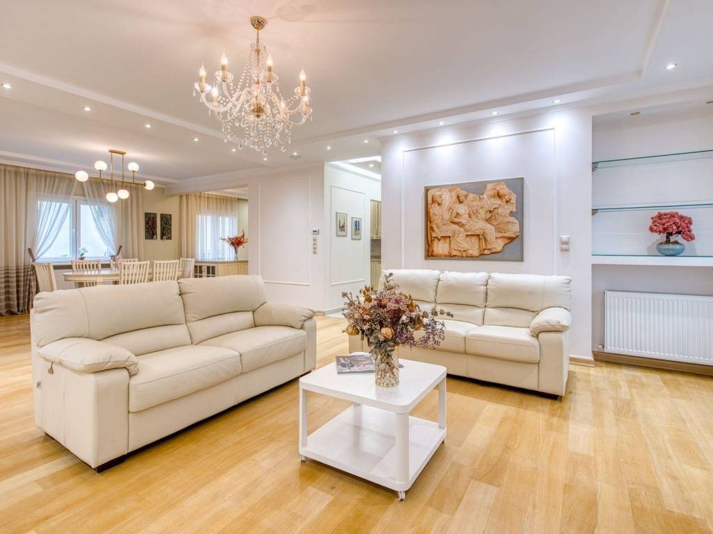In the heart of Kalamaria, in one of its most sought-after and quiet areas, Karabournaki, a luxurious 210 sq.m. apartment is available for sale. (190 sq.m. net), fully renovated in 2021 with a special emphasis on comfort, aesthetics, and security, in a neoclassical building of unique architecture. It consists of: a spacious open-plan kitchen with a large living room and fireplace, 3 bedrooms and a dressing room, 2 bathrooms (one with bathtub, the second with shower, sauna & hammam), Autonomous gas heating, Air conditioning in every room, Security system with cameras and alarm. The year of construction is 1983, while a complete radical renovation was carried out in the kitchen, bathrooms, electrical, plumbing, and window frames. The residence offers comfort, luxury, and a high quality of life, combining modern design with practicality. It is located in a privileged spot, close to the sea, the market, and the basic infrastructure of Kalamaria. A unique, high-standard property, ideal for a family looking for a refined and safe residential environment in one of the most beautiful locations in Thessaloniki. Location: Kalamaria is located in the southeastern part of Thessaloniki. Unique Features: Kalamaria is known as the "Riviera of Thessaloniki" and is an area with a vibrant life and unique character. A characteristic spot in Kalamaria is the Marina, which attracts people of all ages who wish to enjoy their walk and engage in sports. Kalamaria is renowned for its quite large market and the vast range of dining options it offers. Accessibility: Kalamaria is just 7.5 kilometers from the center of Thessaloniki and 12 kilometers from the airport, and is served by several OASTH bus lines. Investment Strength: The particularly lively lifestyle of Kalamaria, along with its excellent location by the sea, helps maintain high investment interest.