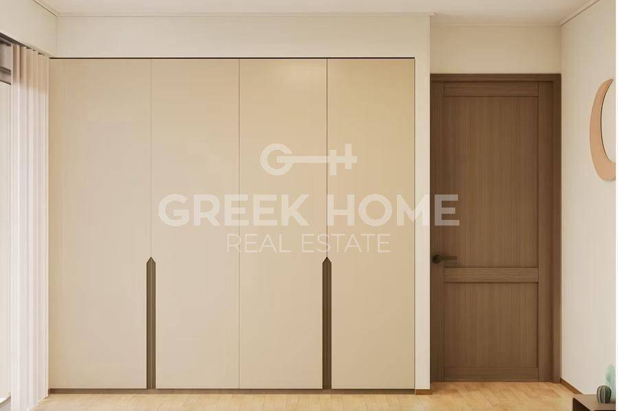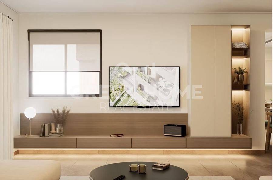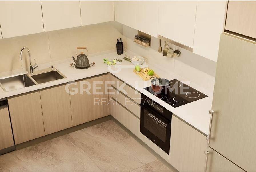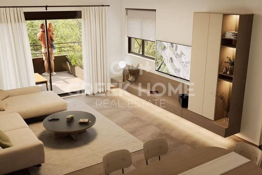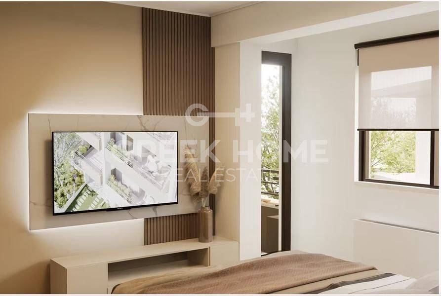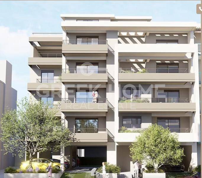 Pallini (Attica - Eastern Suburbs), Centre - Apartment 88sqm bedrooms 2, 2nd, newly built, year built 2025, energy class A, living room, kitchen, bathroom, wc, heating type: individual unit (heat pump), air condition, parking ground floor, quiet, painted, electric roller shutters, storage space, solar heater, external thermal insulation, balconies, large balconies, elevator, thermal shut-off frames, double glazed windows, door screen, wood & tile floors, handicap ramp, night electricity discount rate, secure door, alarm, surveillance cameras, video doorbell, luxurious, smart home, ev charger, satellite, internet.