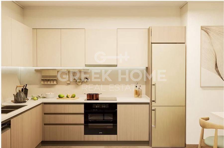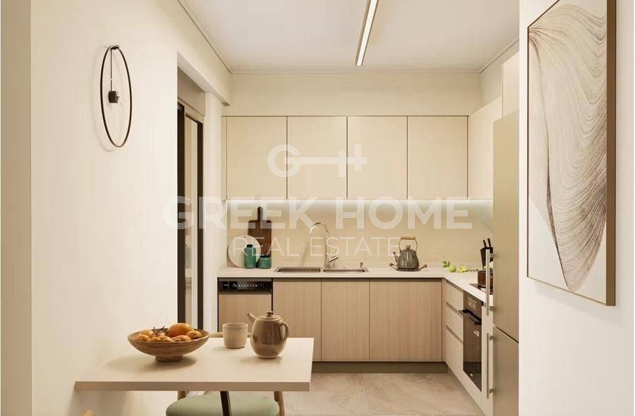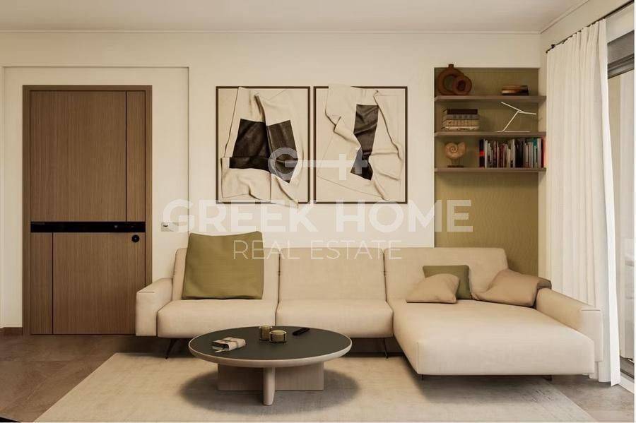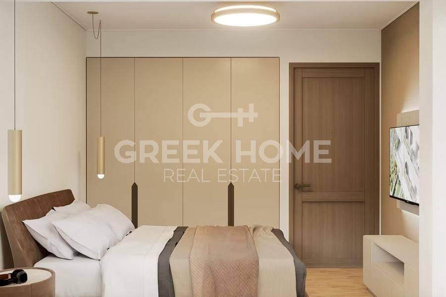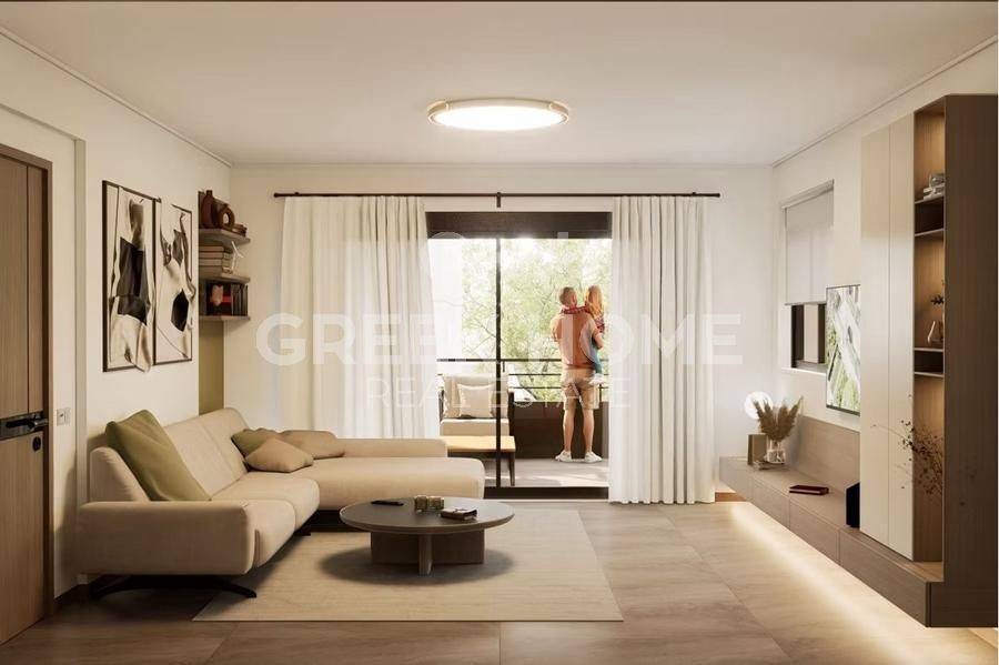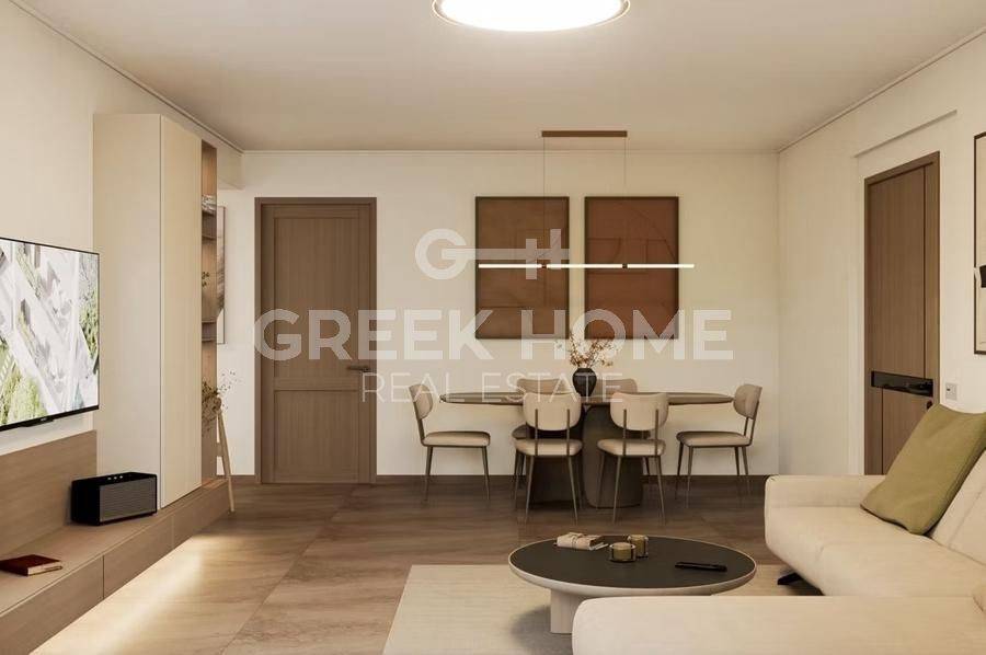 Pallini (Attica - Eastern Suburbs), Centre - Apartment 88sqm bedrooms 2, 2nd, newly built, year built 2025, energy class A, living room, kitchen, bathroom, wc, heating type: individual unit (heat pump), air condition, parking ground floor, quiet, painted, electric roller shutters, storage space, solar heater, external thermal insulation, balconies, large balconies, elevator, thermal shut-off frames, double glazed windows, door screen, wood & tile floors, handicap ramp, night electricity discount rate, secure door, alarm, surveillance cameras, video doorbell, luxurious, smart home, ev charger, satellite, internet.