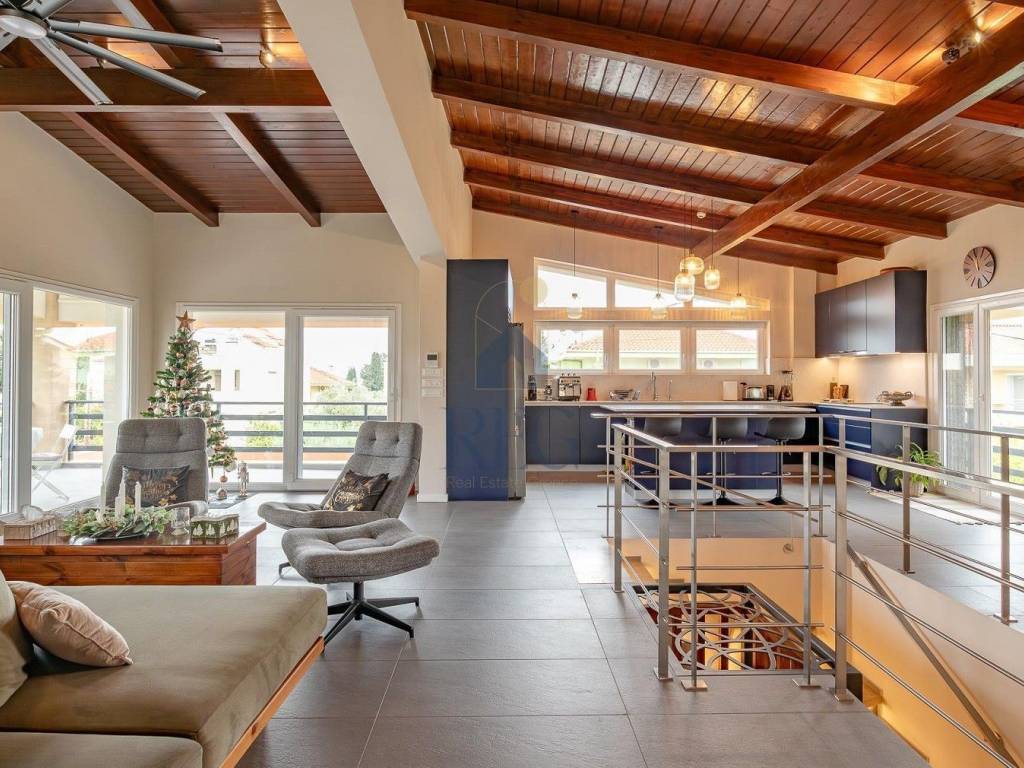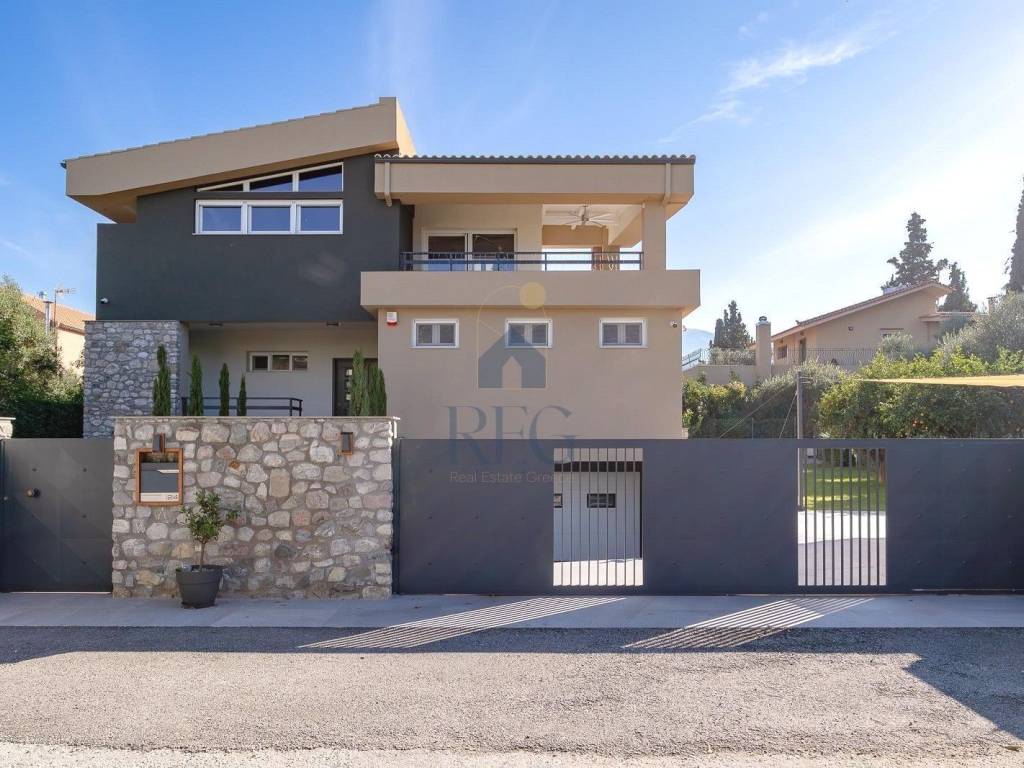 RIO, Luxury Detached House 354 sq.m. in Rio, Patras -EXCLUSIVE- In one of the most privileged and quiet areas of Rio, a luxury residence Villa of 354 sq.m. built in 1980 and fully renovated in 2023, with the possibility of separating into two independent houses, on a plot of 663 sq.m., is available for sale. It is a property that combines modern aesthetics, high energy efficiency (A) and sturdy construction with modern and classic elements, 1,000m from the sea. -Completely renovated spaces with modern materials and modern design. -Impressive wooden roof that adds warmth and character. -Large openings and excellent natural lighting. -Luxurious, modern kitchen with an island. -Master bedroom with full bathroom and walk in closet. -Underfloor heating with autonomy in each space, with LG heat pumps. -10cm thermal facade that ensures high energy efficiency. -PVC frames. -Garden of 450 sq.m. with the possibility of configuration for a bbq or swimming pool. -Closed garage, warehouse - workshop, office, playroom, laundry room. -Close to the Rio Bridge, the beach, the market, the center of Patras. -2 hours from Athens. -Suitable for GOLDEN VISA Ideal for families and those who want comfort and a high quality of life. The house has been completely reconstructed with modern high quality materials, has the possibility of easy installation of an internal elevator as there is also wiring, a bathroom on all levels, the possibility of separating into 2 independent houses, a thermal facade shell, an alarm with a closed circuit monitoring with cameras, a sauna and a large storage area. Price 699.000€, code 6105 The pin is approximate!! The exact address is communicated at the Indication. When showing the property, it is necessary to show the identity card or passport, as well as the VAT number of the interested party, according to Law 4072/11. 4. 2012. ), REG - REAL ESTATE GREECE , www.regrealestate.com , e-mail: regrealestate@hotmail.com, +302111990343