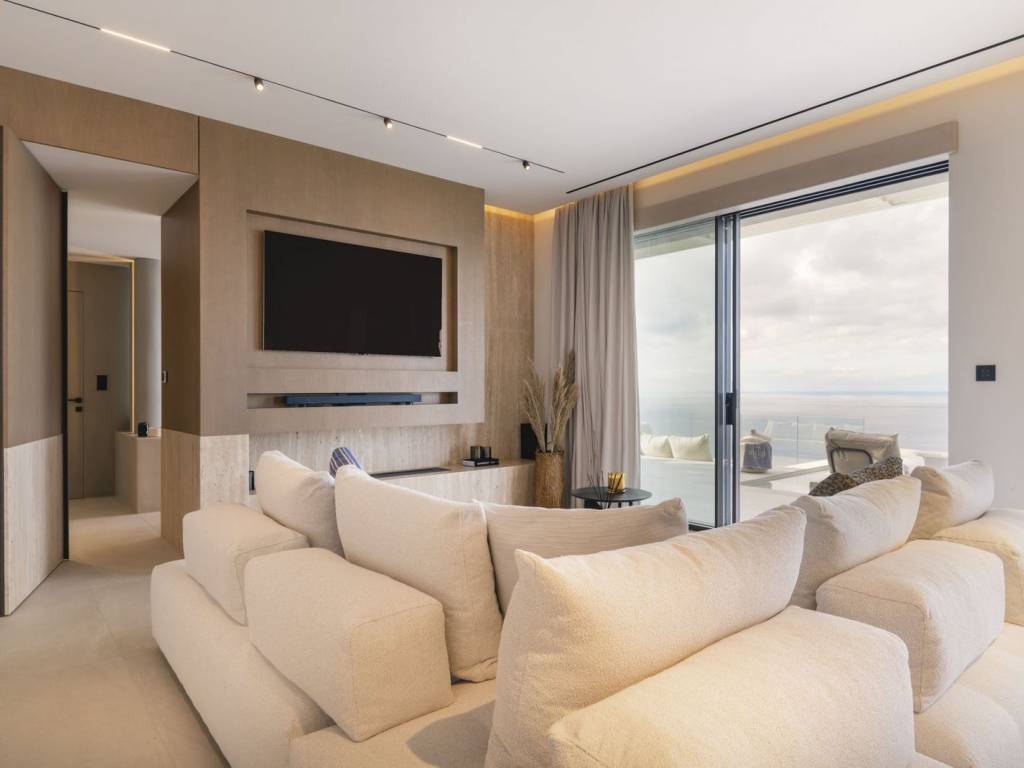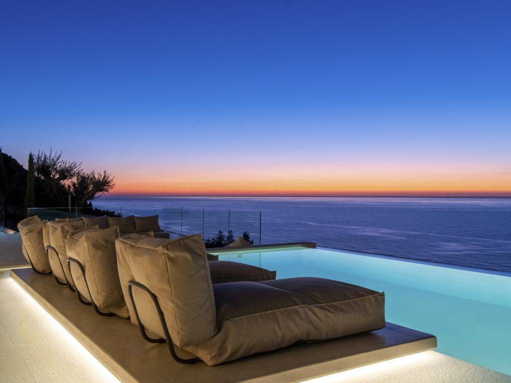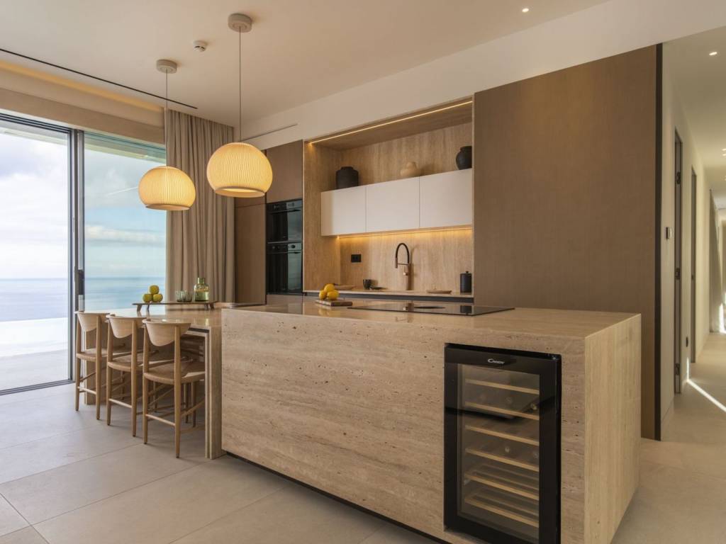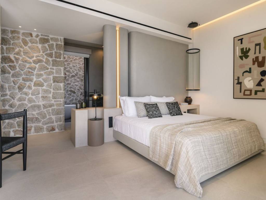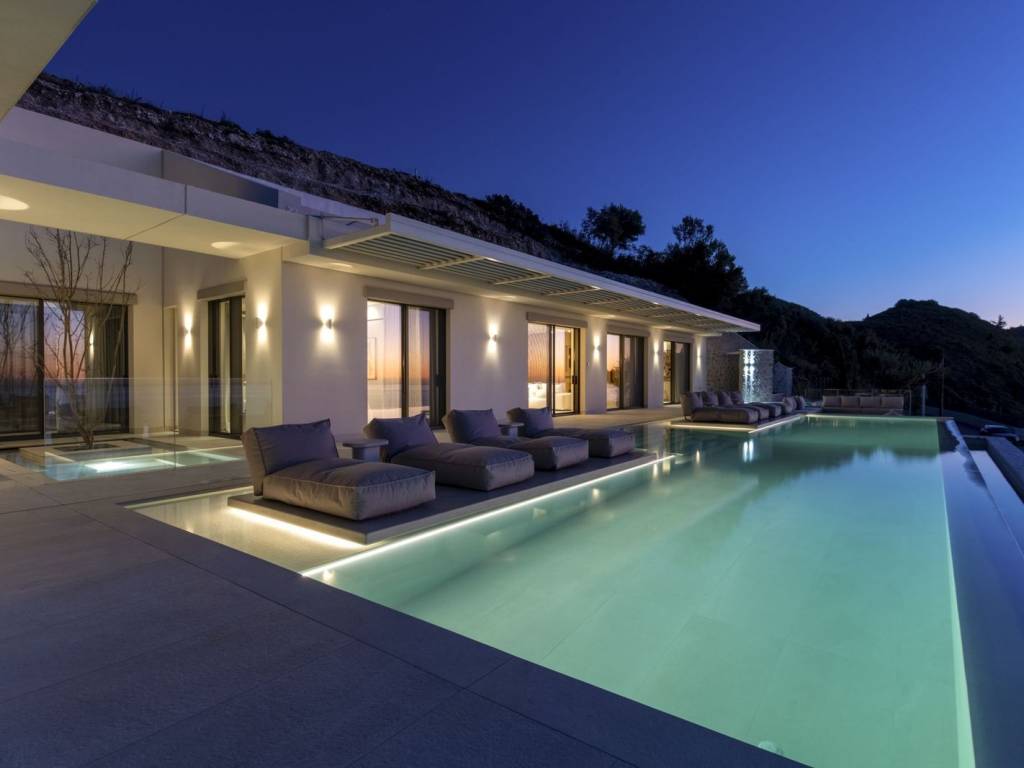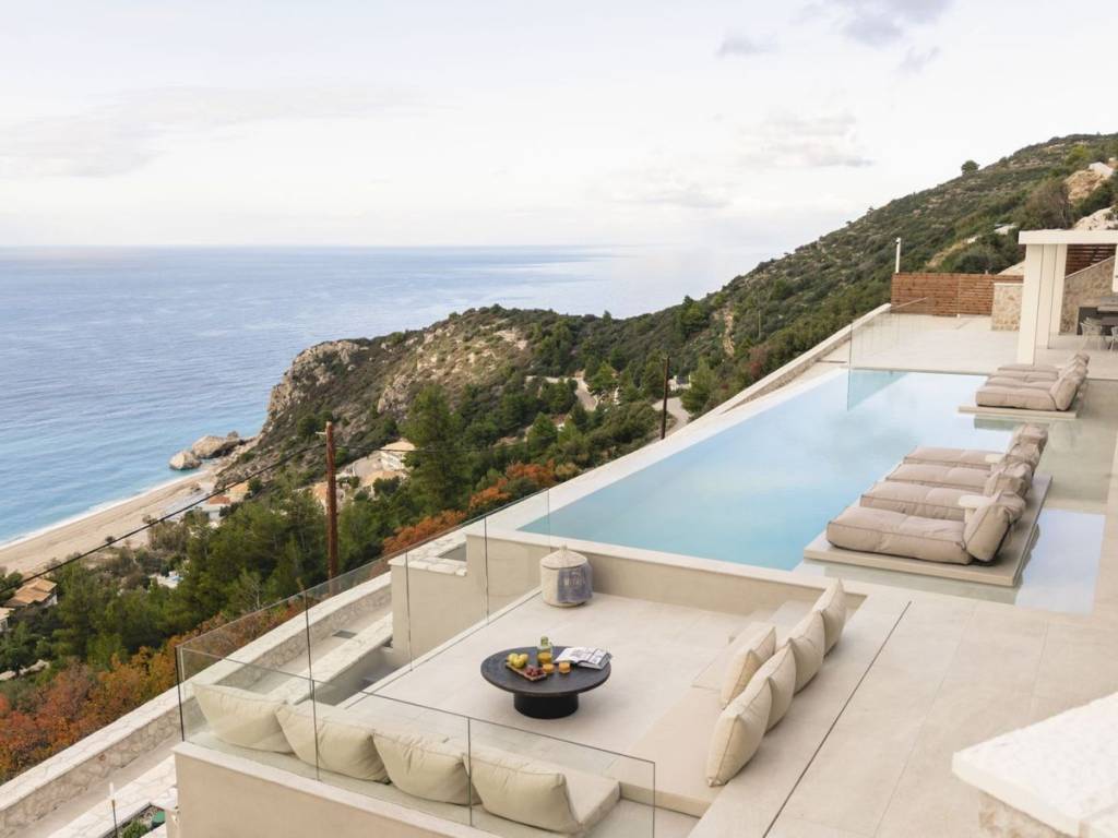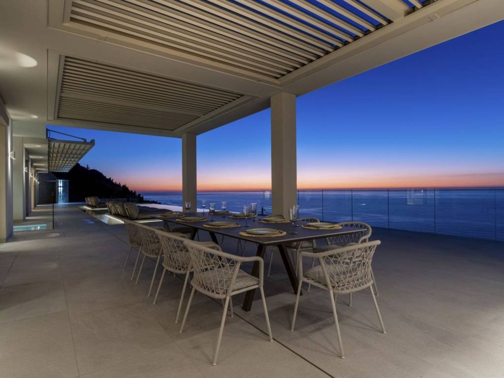 Just 300 meters from the luminous waters of Kathisma Beach and only ten minutes from Lefkada Town, this exceptional cave villa, is carved directly into the natural slope of the hillside, allowing every structure to open fully toward the vast Ionian horizon. Built with premium natural stone, high-grade reinforced concrete, and expansive glass surfaces that dissolve the boundary between interior and landscape, the architecture follows the pure principles of underground luxury design—quiet, sculptural, and entirely shaped by the coast and the sunset. Here, where the sea meets the sky and living becomes light, each evening unfolds in a breathtaking ritual as the sun melts into the open Ionian, igniting the entire horizon in gold and rose tones. It is a place where the atmosphere becomes part of the architecture, where Ionian living is redefined. The 200 m² residence rise at different levels of the sloping terrain, comes fully furnished with luxurious, bespoke pieces selected to complement its minimal stone palette and luminous interior tone. Inside the villa, the living spaces unfold with measured elegance. A generous open-plan salon anchors the interior, featuring a refined fireplace that becomes a focal point during cooler evenings. Floor-to-ceiling glazing draws the full length of the Ionian Sea into the room, allowing daylight and sunset color to animate every surface. Adjacent, a state-of-the-art kitchen is fitted with hi-tech integrated appliances, sleek contemporary cabinetry, and a layout that enables both effortless daily living and elevated entertaining. The dining area is positioned toward the west, ensuring that every meal is illuminated by the open-sea sunset—a form of sunset architecture that transforms the passing hours into living artwork. Four master bedroom suites complete the private wing of this villa, each designed as a sanctuary of calm. Refined mineral surfaces, sculpted stone details, and carefully curated lighting create an atmosphere of purity and serenity. Every suite includes its own en-suite bathroom and panoramic glazing that captures the ever-changing blues of the Ionian. Outdoors, the villa extends into a series of terraces carved into the natural slope. An infinity pool stretches toward the sea, its water merging visually with the horizon. An outdoor lounge beneath custom shading structures invites long hours of relaxation, while a fully equipped outdoor kitchen and BBQ pavilion turn the exterior environment into a complete living and dining experience. Every exterior angle is designed to frame the open Ionian and the uninterrupted sunset. In addition to the main residence, the property includes a 40 m² independent servant’s quarter, located in a separate building on the plot. Designed with the same refined material quality and architectural coherence as the main villa, this auxiliary residence offers complete privacy and functionality, ideal for live-in staff, guest accommodation, or auxiliary hospitality use—adding a valuable layer of flexibility to the estate. With minimal architecture, exceptional materials, infinity pool, sunset-facing suites, and a location that places the open Ionian at your feet, this villa is where lifestyle and investment meet. It is a sculpted Mediterranean retreat illuminated by one of Greece’s most dazzling horizons—a place where architecture embraces the elements, where nature shapes every moment, and where luxury becomes synonymous with the sky and the sea. Beyond its architectural and lifestyle appeal, the property is fully eligible for the Golden Visa and also benefits from qualification under the Greek Non-Dom Program. Lefkada is one of the few Greek islands accessible by car, enhancing both accessibility and demand. Known for its stunning beaches and growing tourism sector, it attracts buyers seeking holiday homes, boutique hotels, and premium land plots. The real estate market offers a range of opportunities, from renovating traditional houses to developing luxury villas with high rental yields. Its strategic location places it near Preveza, Paxos, and Kefalonia, making it a valuable hub in the Ionian region.