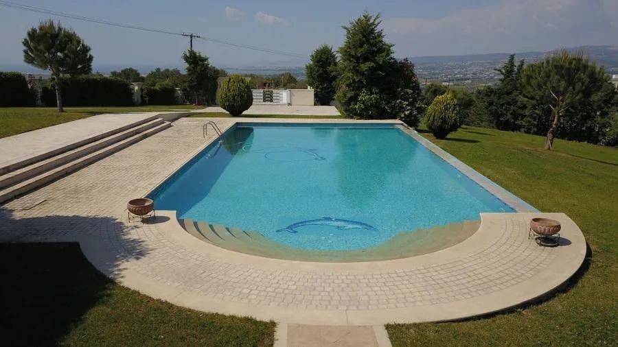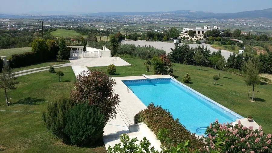 Villa de luxe de 600 m² à vendre à Tagarades, Thermi, un véritable manoir avec vue panoramique et un sentiment unique d'intimité. La propriété est située dans un terrain verdoyant de 11 500 m² et se développe sur deux niveaux (rez-de-chaussée et 1er étage). Elle dispose de 8 chambres, 8 salles de bain, de grands espaces lumineux et de tout le confort moderne : chauffage autonome au fioul, climatisation, chauffe-eau solaire, courant triphasé et cheminée. Elle est entièrement meublée et prête à habiter. La villa offre de riches équipements tels qu'un ascenseur, une salle de jeux, un débarras, une antenne satellite, une porte de sécurité, un système d'alarme et un parking privé. Les espaces extérieurs se distinguent par leur jardin impressionnant, leur piscine et leurs grandes vérandas avec vue illimitée. Accès par route goudronnée, accès facile pour les PMR et orientation nord. Prix de vente : 2 800 000 €