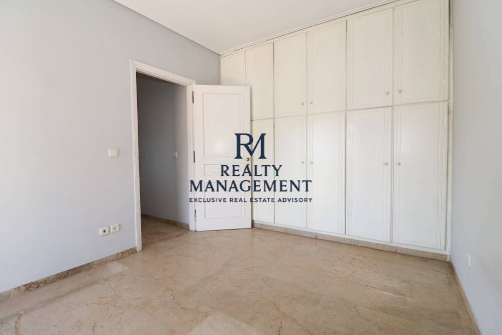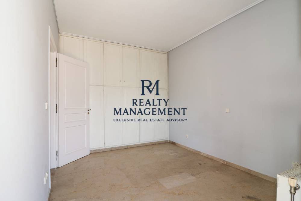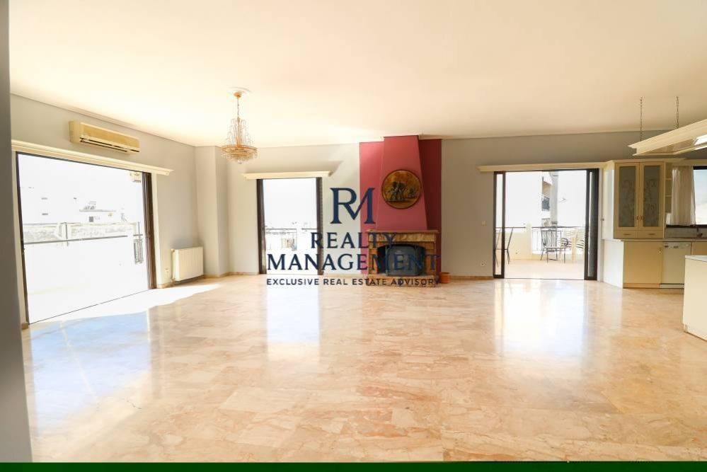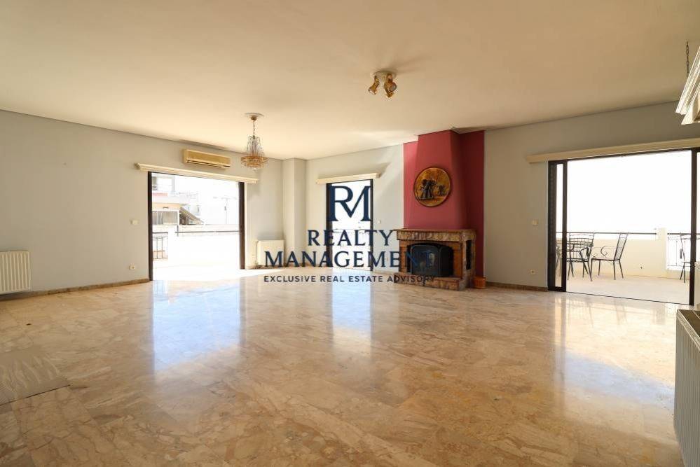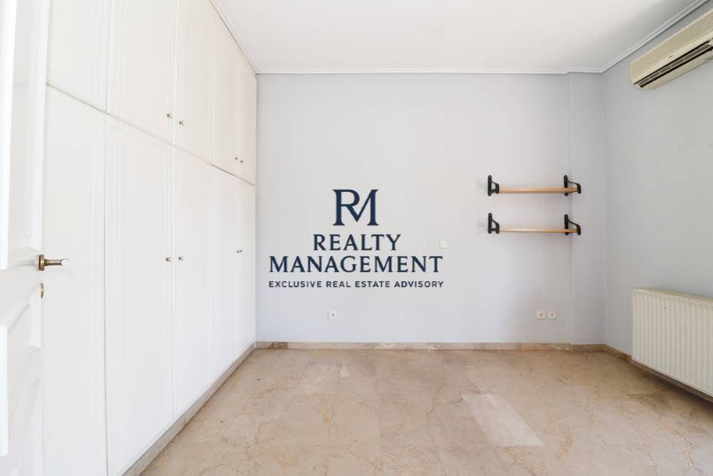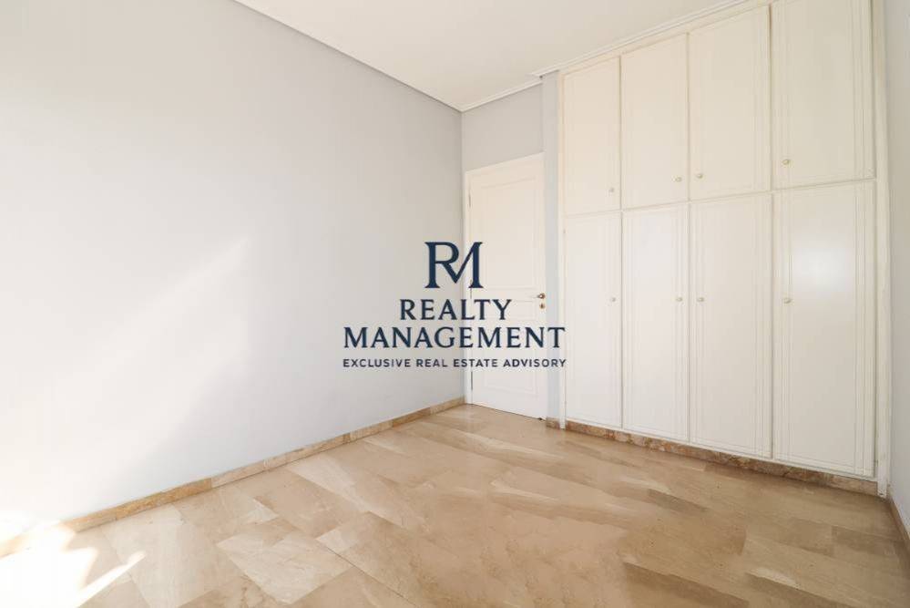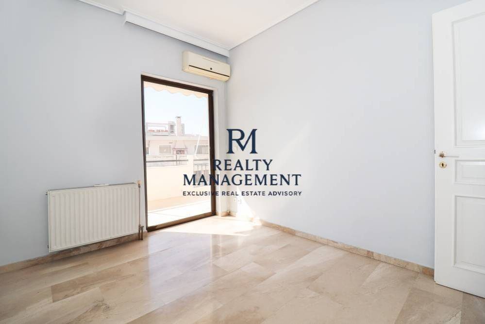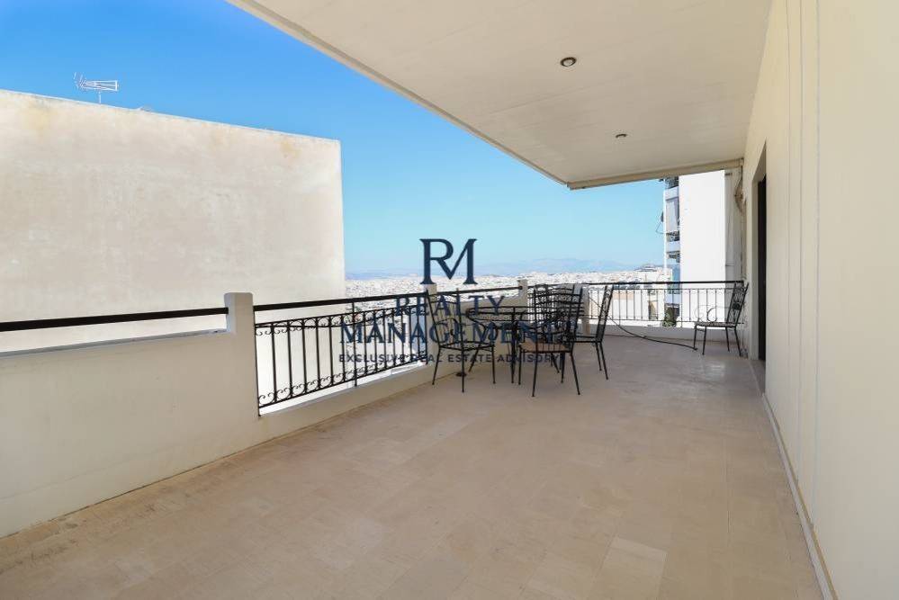 Occupying the entire 3rd floor, this front-facing, dual-aspect 131 sq m apartment is filled with natural light and offers a well-balanced layout. Accommodation includes three comfortable bedrooms, a separate kitchen, a generous reception with fireplace, a family bathroom and a separate WC for everyday convenience. Features comprise independent natural gas central heating, aluminium window frames, a security door, air conditioning, marble flooring and a solar water heater. The property enjoys rare, far-reaching views towards the Acropolis, Piraeus and the Saronic Gulf—an elevated outlook that lends distinction to daily living. A quality home with character, ideal for a family or couple seeking space, light and privileged vistas.