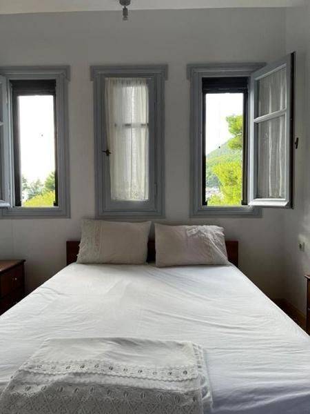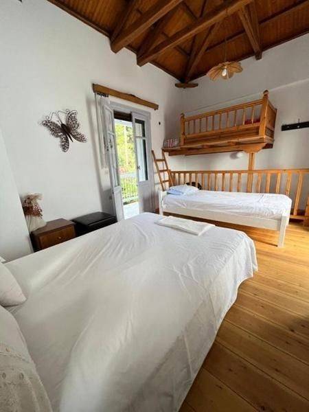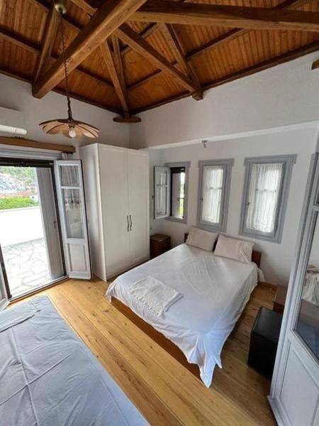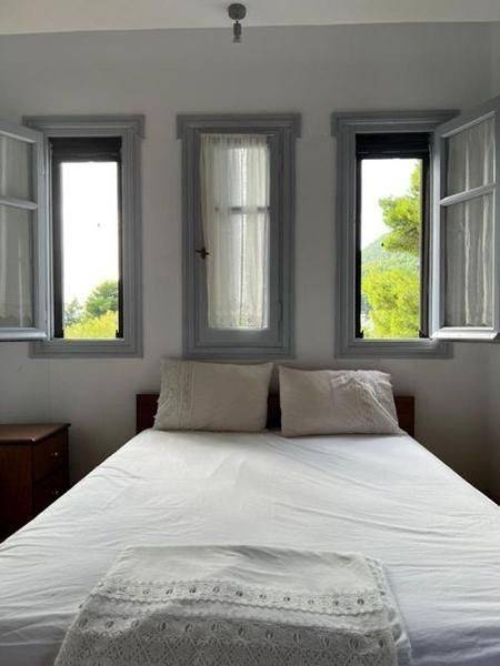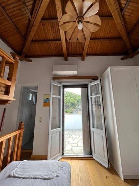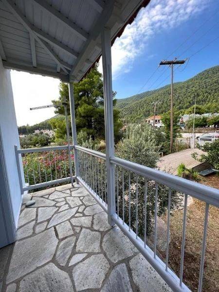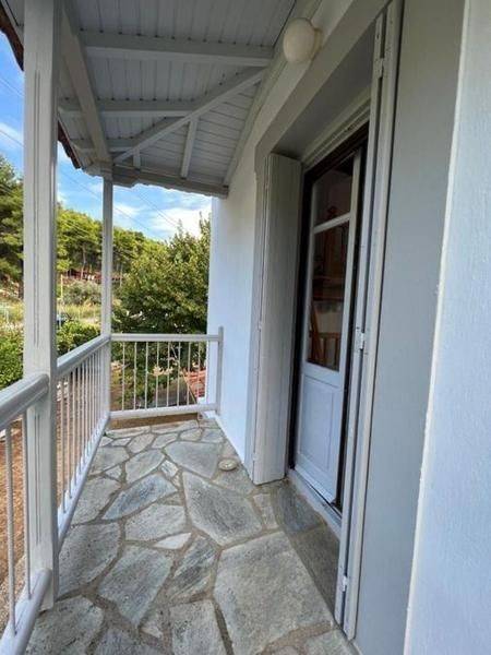 Skopelos, Neo Klima - Detached House 75sqm plot 1022sqm, fully furnished, bedroom, levels 2, ground floor - 1st, excellent condition, year built 1996, energy class E, living room, kitchen, bathroom, 2 wc, heating type: autonomous (electricity), air condition, parking, quiet, dual aspect apartment, luminous, sea view, frontage, storage space, wooden windows, fireplace, balconies, large balconies, tents, garden, wood & tile floors, internal staircase, barbeque, pets allowed, residential zone, access from asphalt. Independent detached house of 75 sq m on two levels - ground floor and 1st floor - on a plot of 1,022 sq m with wonderful sea and mountain views as well as a wonderful, mature garden with many corners for relaxation and tranquility. The layout of the house is as follows: The ground floor consists of a spacious and very bright open space that includes a living room with an imposing, traditional fireplace, a dining room and a kitchen. The space is surrounded by many windows offering plenty of light. A wooden staircase leads to the upper floor, which hosts a very comfortable bedroom with a double and a single bed. From this level, doors open onto a large balcony as well as a large terrace, both of which offer magnificent views of the sea and the picturesque settlement, offering endless hours of peace and quiet. The garden is full of fruit trees, which perfectly blends in with the natural beauty of the island, while the shady courtyards offer the ideal place for hours of recreation & relaxation with family and friends. The garden also has a BBQ for ideal outdoor dinners in nature. The property is located on the edge of the village of Neo Klima and within walking distance of the beautiful beaches of the area while access is very easy directly from the paved road. Ideal for a holiday home or permanent residence.