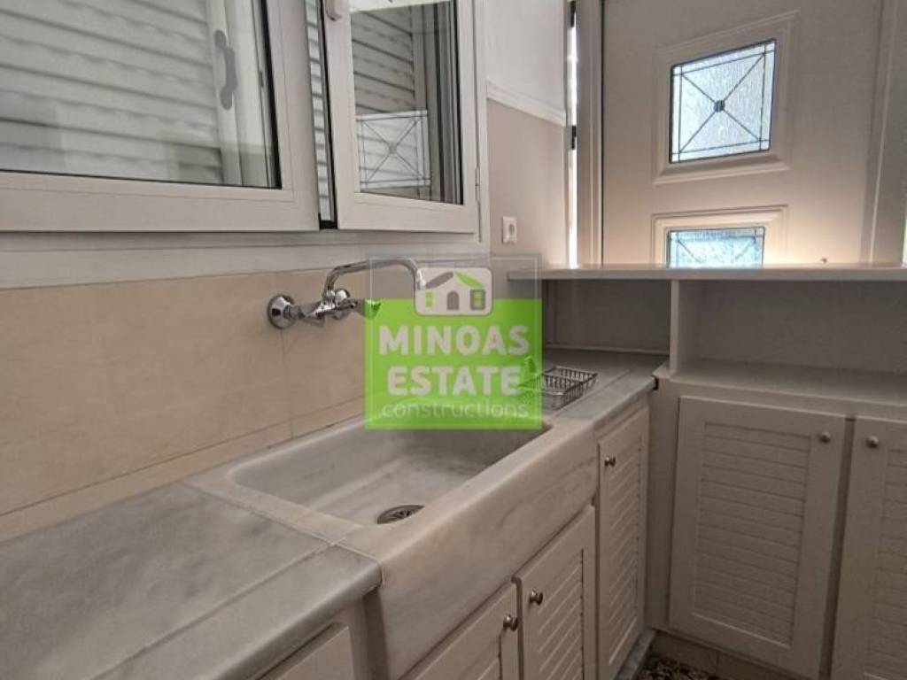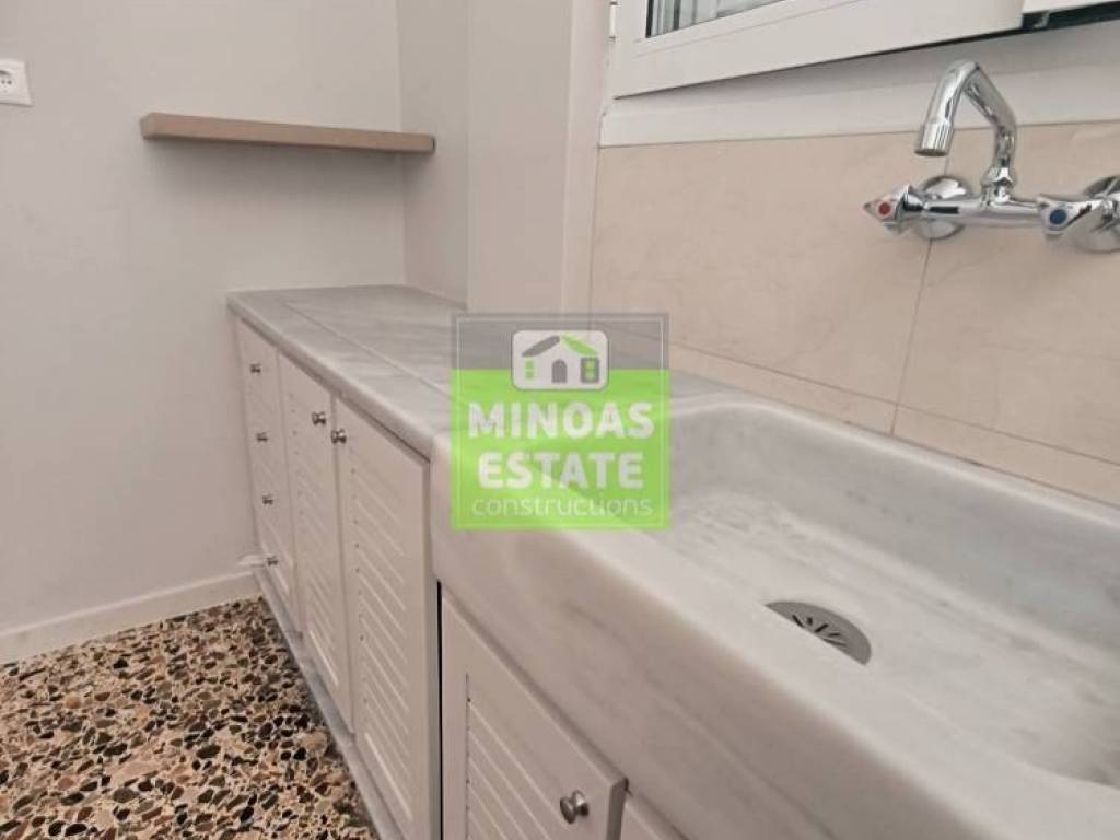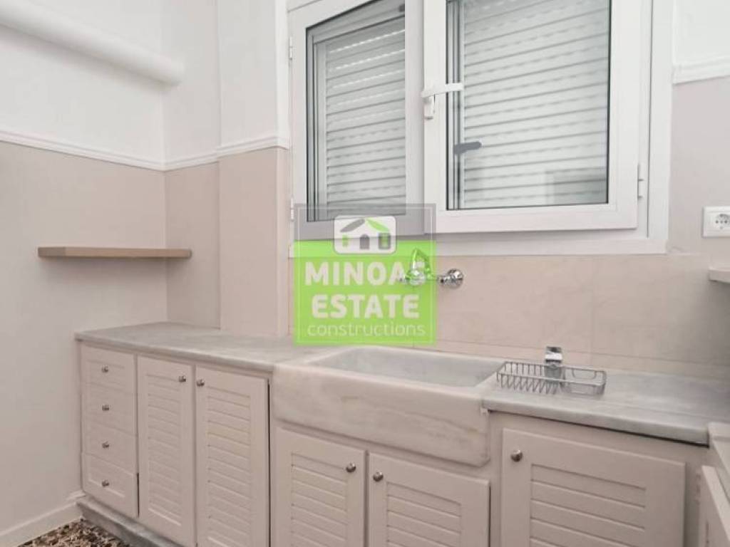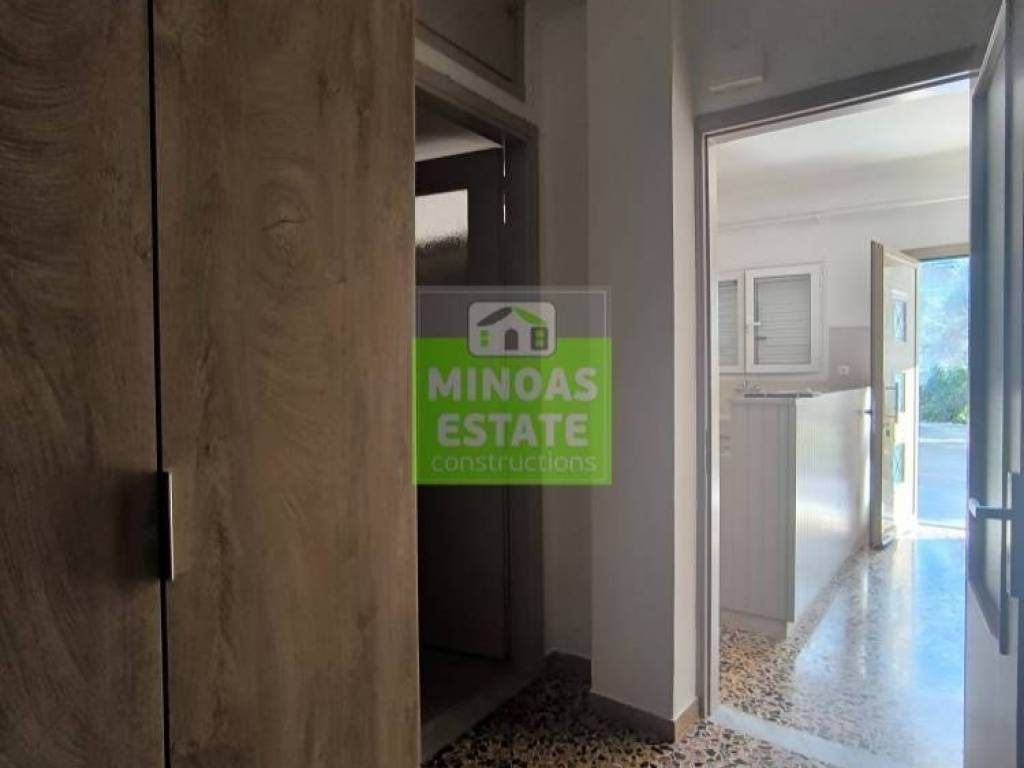 Therisos, Perivolia: For rent, partially renovated bright Apartment 80 sq.m. large plot of land. on the ground floor with oil central heating and air conditioning in a 2-storey building. It consists of 2 comfortable bedrooms, 1 living room kitchen, Garden, and bathroom. It has large wardrobes, it is painted, close to SCHOOLS-PHARMACY-SUPERMARKET and it has aluminum frames with double glazing, security door, outside parking space, mosaic floors, screens, solar water heater. It is ideal for families or workers. Price €600 (long-term rental with contract) | Property Code: #E-200948