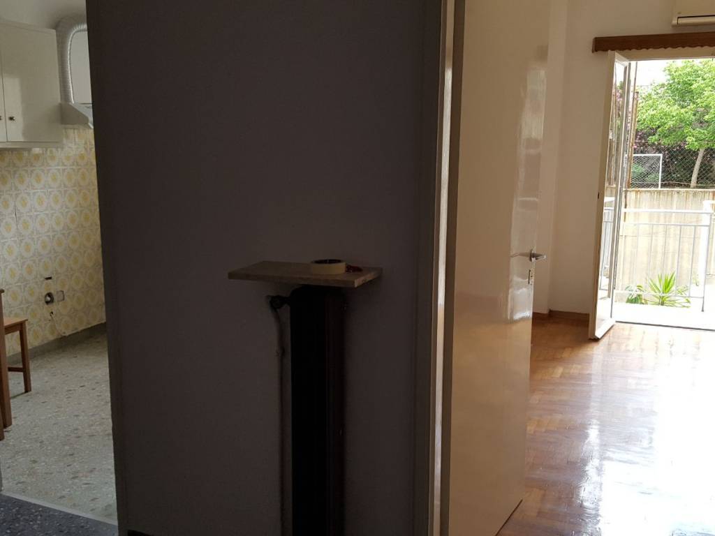 central Pagkrati area, studio apartment, 40.7 sq m, mezzanine, bright (the balcony overlooks a school courtyard). Consists of: hallway, bathroom, one large room, separate kitchen room, balcony.