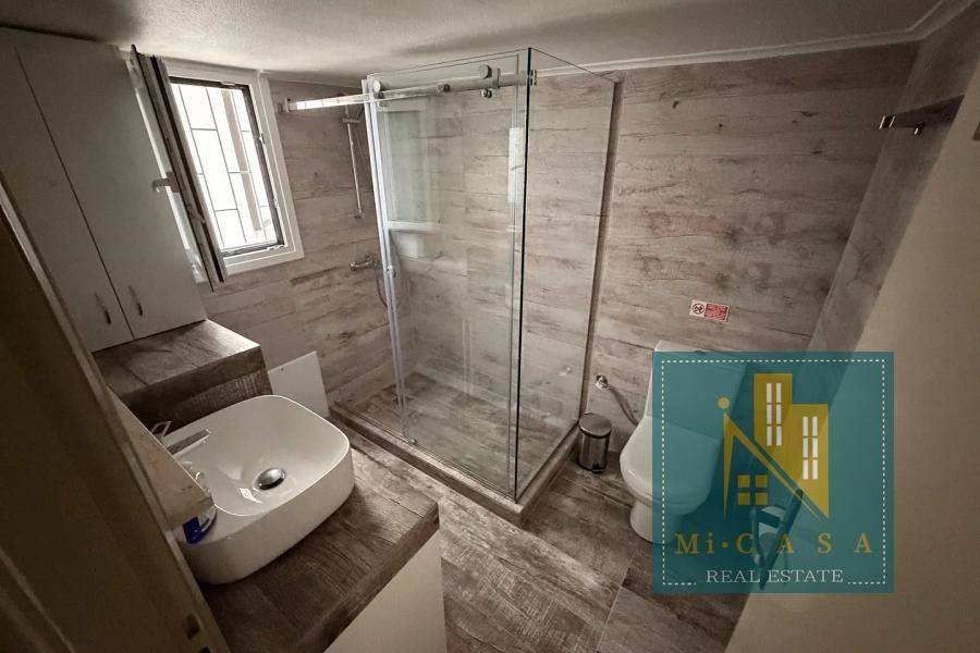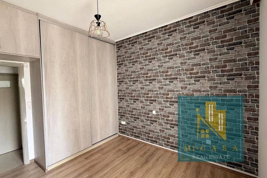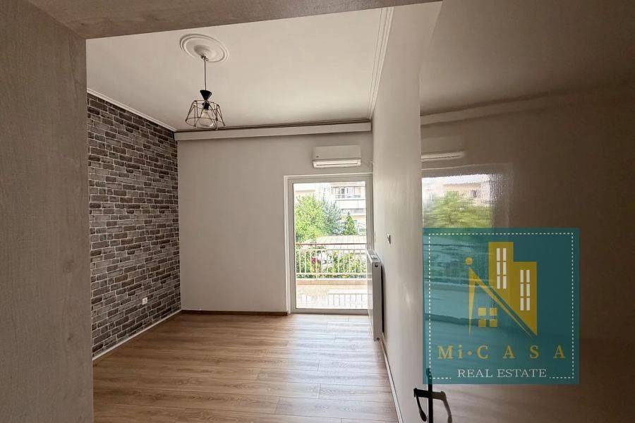 Peristeri, Single Floor Apartment,, Rental, 102 sq.m, year built 1980, renovated in 2024, 3 rooms, Ground Floor, Availability: Available, Parking spot: Semi-outdoor, Heating: Air-condition, Autonomous Natural Gas, Condition: Renovated, Floor type: Tiles, Wood, Window frames: Aluminum, Energy class: C, Position: Dual-aspect, Frontal, Includes: Awnings, Bathroom, Fly screens, Loft, Security door, Solar water heater, Storeroom, Veranda, WC. property ID: 1878