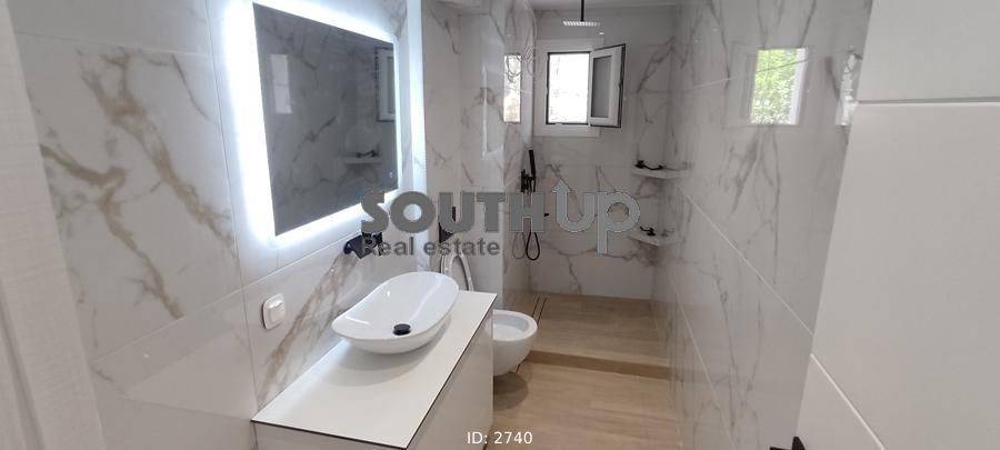 Saronida - Apartment 100sqm unfurnished, bedrooms 2, levels 1, 1st (100sqm, 2 bedrooms, living room, dinning room, kitchen, bathroom), fully renovated, year built 2005, energy class C, living room, kitchen, bathroom, heating type: autonomous (heat pump), air condition, quiet, dual aspect apartment, luminous, sea view, electric roller shutters, solar heater, balconies, large balconies, tents, elevator, aluminum frames, double glazed windows, marble & tile floors, secure door, alarm, video doorbell, luxurious, under floor heating, swimming pool, residential zone, south-western orientation, access from asphalt, close to sea (up to 500m), close to market (up to 500m).