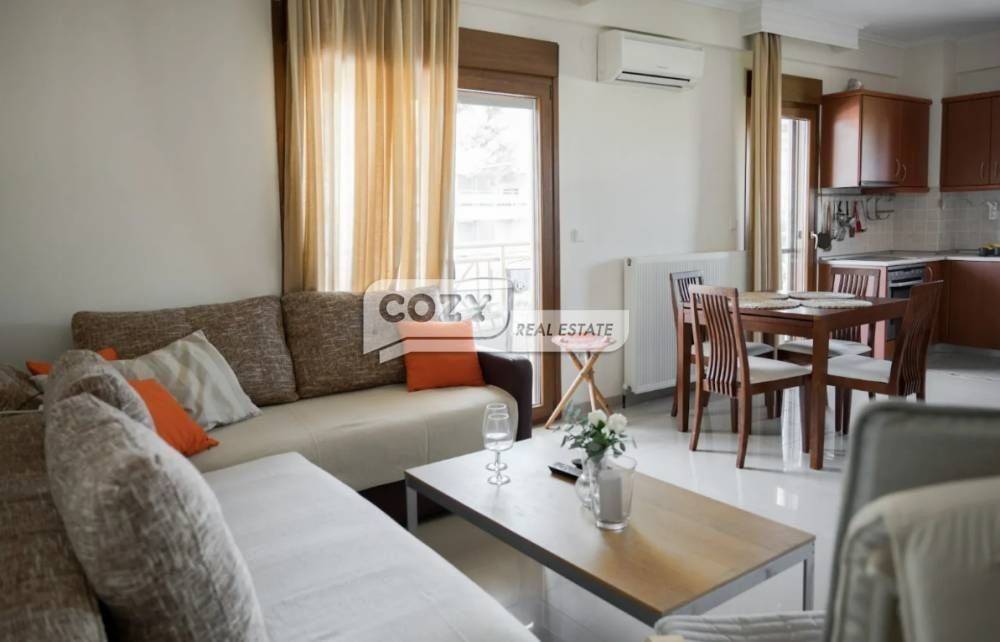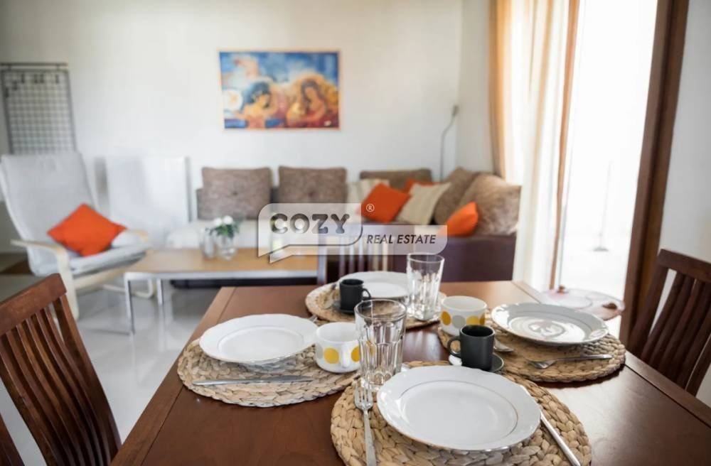 The residence combines high-end quality, comfort, and refined functionality, featuring a spacious, fully equipped kitchen and a generous living area suitable for both everyday living and relaxed hosting. The apartment is offered fully furnished and fully equipped, with carefully selected household items and modern appliances. It includes a king-size bed, washing machine, and two TVs.
