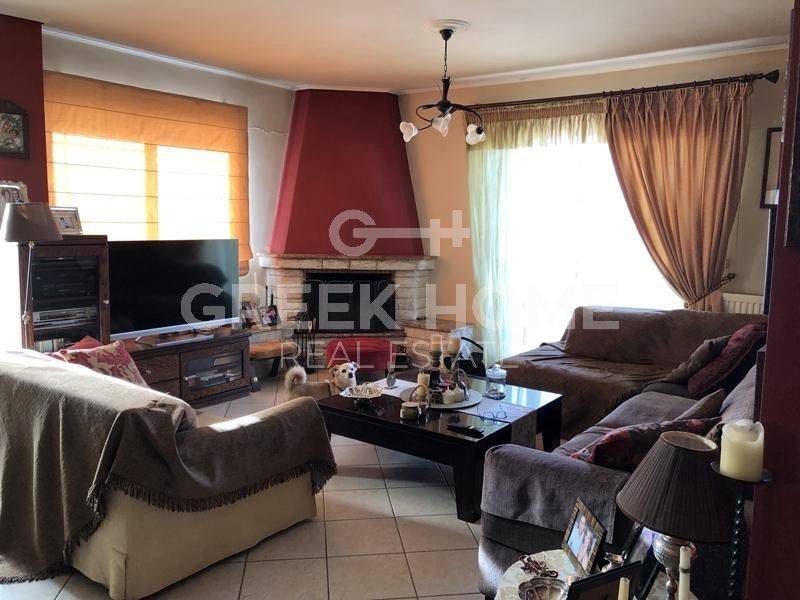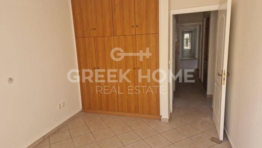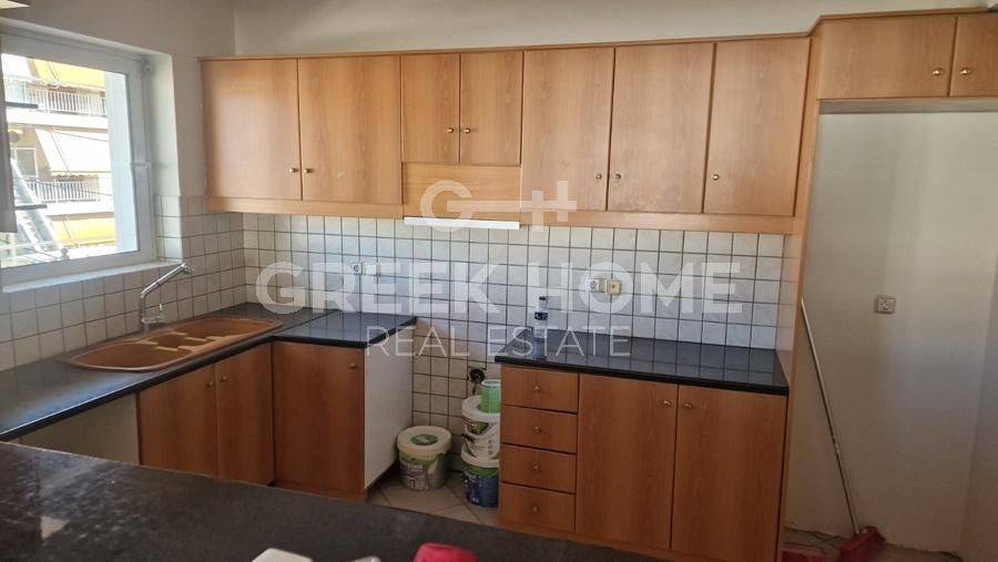 Lykovrysi - Apartment 105sqm unfurnished, bedrooms 3, 1st, very good condition, year built 2002, energy class C, living room, hall, kitchen, bathroom, wc, heating type: autonomous (oil), quiet, dual aspect apartment, luminous, unobstructed view, frontage, painted, solar heater, fireplace, balconies, large balconies, aluminum frames, double glazed windows, door screen, ceramic tiles floors, secure door, alarm, video doorbell, pets allowed, north-western orientation.