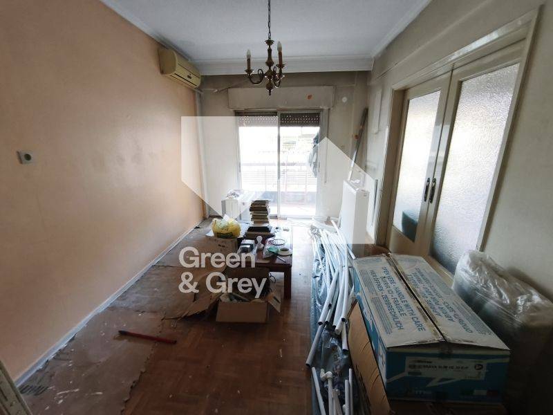 A corner, front-facing penthouse on the 4th floor in Kalamaria is available, 110 sq m. gross (88 sq m. net), in a post-earthquake building from 1980 with an elevator and a parking space in the piloti. The property is in the process of completing a general renovation and will be available from the end of January. It has individual natural gas heating (just installed), a new kitchen with a small practical balcony, a renovated bathroom, terrace insulation, air conditioning, an armored security door, awnings and wooden and tiled floors. The layout includes two living rooms separated by a sliding door, 3 bedrooms (possibility of a 4th bedroom), kitchen, bathroom and hallway, as well as a large perimeter front balcony, ideal for a table and daily use. Very bright, freshly painted, with a large closet, ideal for a family or demanding living.