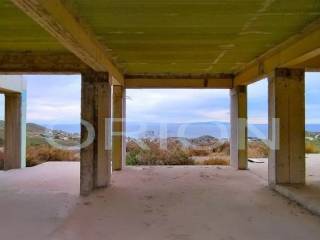 Syros, Megas Gialos, incompleted two-story residential building of 200m2 with underground space of 140m2, on a sloping plot of 4015m2 with amazing view of the sea and the islands. With the possibility of being one single-family house or divided into 2 or 3 smaller residences.