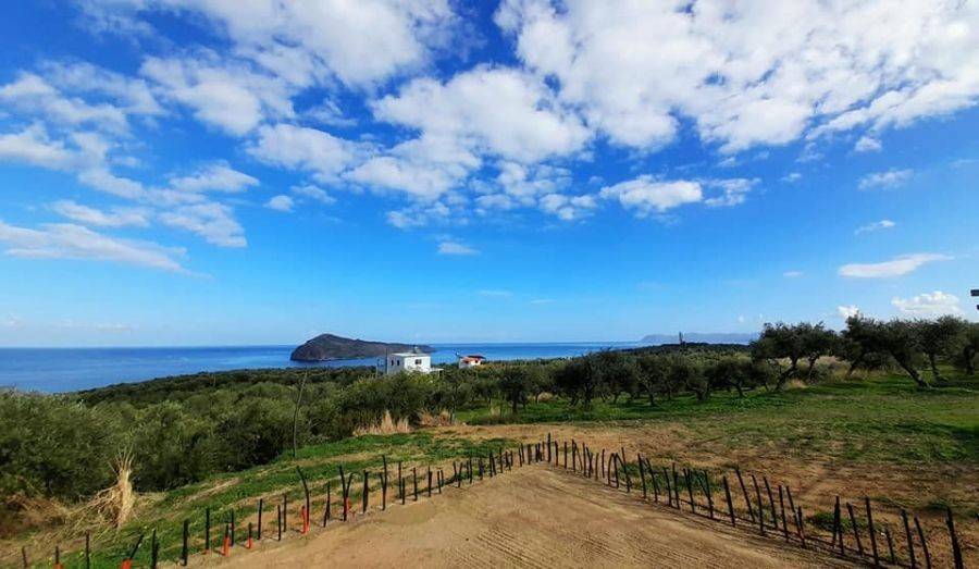 Το οικόπεδο βρίσκεται σε ύψωμα και διαθέτει ανεμπόδιστη θέα στη θάλασσα.