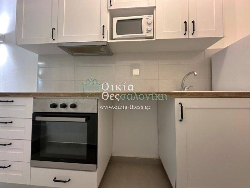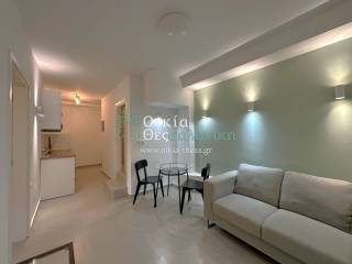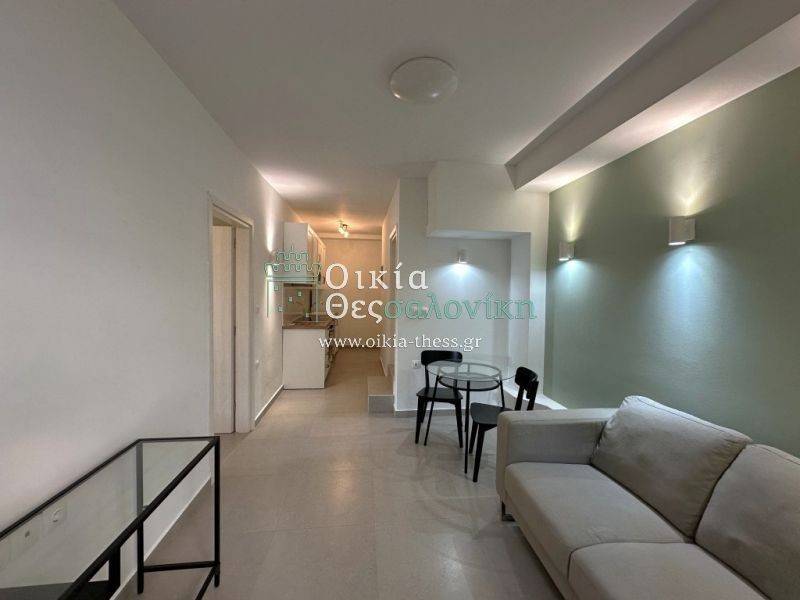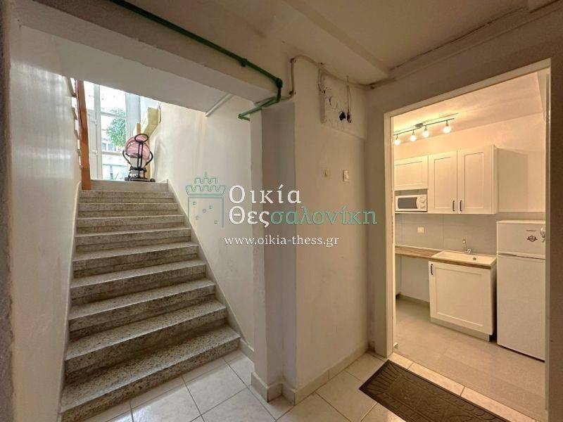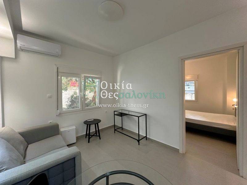 Kalamaria, front corner studio for rent, fully renovated and furnished, 40sqm, in the semi-basement, building built in 1966, well-maintained.