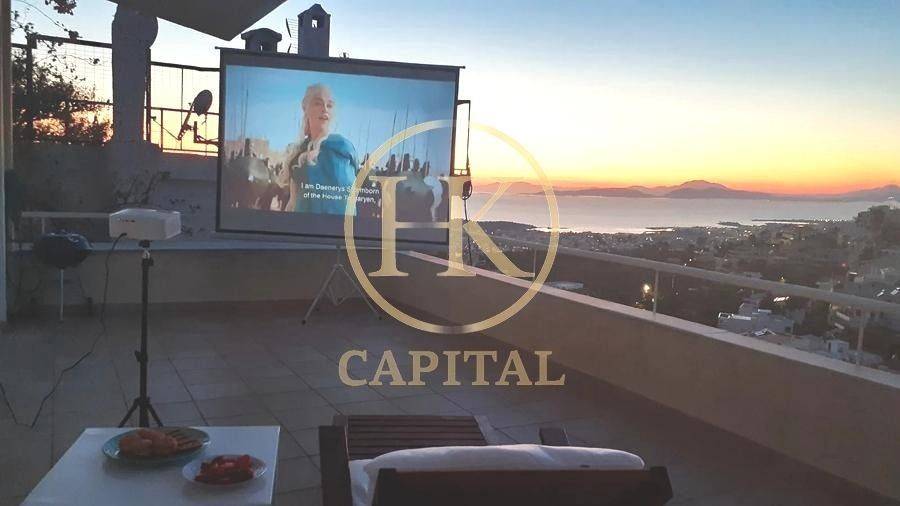 Voula, Panorama - Detached House 370sqm plot 359sqm, bedrooms 4, levels 2, ground floor - 1st, excellent condition, year built 1992, energy class D, 3 living rooms, hall, 3 kitchens, 4 bathrooms, heating type: central (natural gas), parking open space, quiet, dual aspect apartment, luminous, panoramic view, frontage, painted, electric roller shutters, storage space, solar heater, fireplace, balconies, large balconies, tents, garden, aluminum frames, double glazed windows, wood & tile floors, without common charges, night electricity discount rate, secure door, video doorbell, luxurious, internal staircase, playroom, cloakroom, guest house, service room, internal elevator, laundry room, pets allowed, within city plan, residential zone, south-eastern orientation, access from asphalt, investment property, special offer, close to sea (up to 3000m).