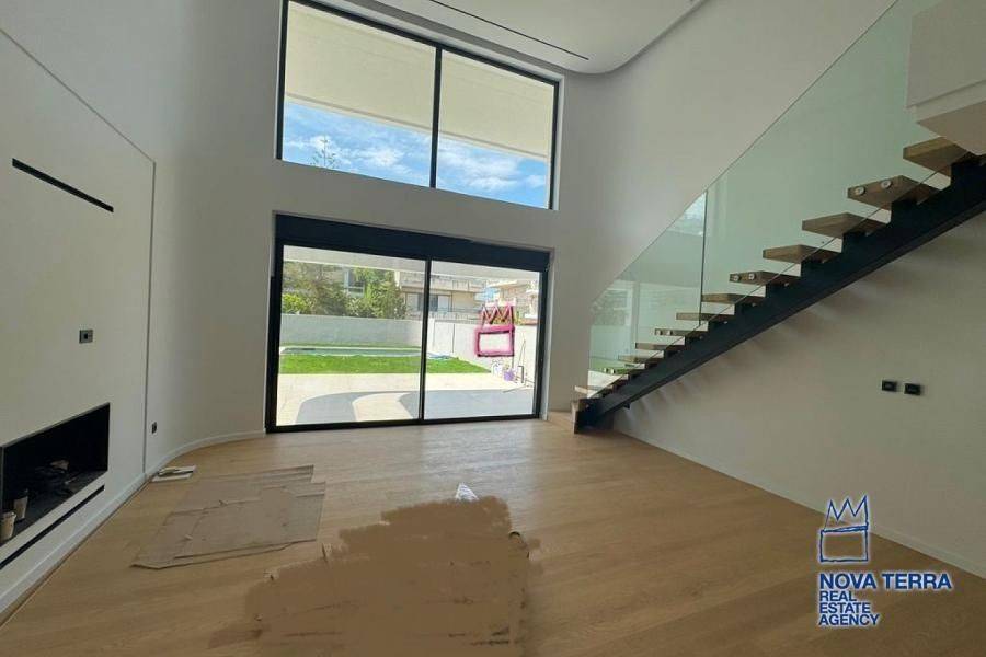 GLYFADA - EVRUALI, Duplex / Triplex Apartment,, Sale, 170 sq.m, on a plot of 300 sq.m, year built 2023, 3 rooms, Ground Floor, 1st, Various Characteristics: Balcony, Bath (2), Escalator, Fire Place, Garden, Kitchen, Living room, Store Room, Swimming Pool, Toilet, Master Bedrooms: 1 Master Bedroom, Flooring: Wooden floor, Heating: Fan coil, Floor heating, Heating pump, Access road, Aluminium panels, Bright, Double-glazing, Electric Roller Windows, Facade, From Side to Side, Luxury, Minimal, Newly built, Painted, Residential area, Screens, Security Alarm, Security Door, In perfect condition: Pets allowed: Satellite dish: For investment: Parking area: Garage, Energy class: A. property ID: 48036, www.nova-terra.gr