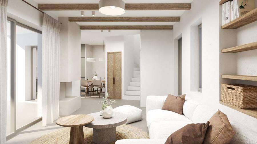 House for sale by SCOPAS REAL ESTATE and CONSTRUCTION. In the charming and traditional village of Aspro Chorio, a two-story house of 105 sq.m. is under construction on a 207 sq.m. plot. The property features a modern design with full customization options to suit your personal taste. The ground floor offers a spacious living room, dining area, functional kitchen, and bathroom, while the first floor includes two bright bedrooms, a second bathroom, and access to outdoor spaces. The private courtyard provides an ideal space for a garden or relaxation area. This property is perfect for permanent residence, a vacation home, or even for tourist rental, taking advantage of Paros’ popular tourism flow. Location & Access: Paved road access 2 km from Lollandoni Beach 9.9 km from the airport 16.7 km from the port Southeast orientation Aspro Chorio combines tranquility, Cycladic charm, and easy access to beaches, taverns, and local amenities – a unique opportunity for a home or investment with the potential to complete it fully according to your vision. - The location marker on the map does not correspond to the exact address of the property. - In compliance with Law N.4072/2012 - Official Gazette 86/A/11-4-2012, a valid identity card or VAT number is required when referencing the property.