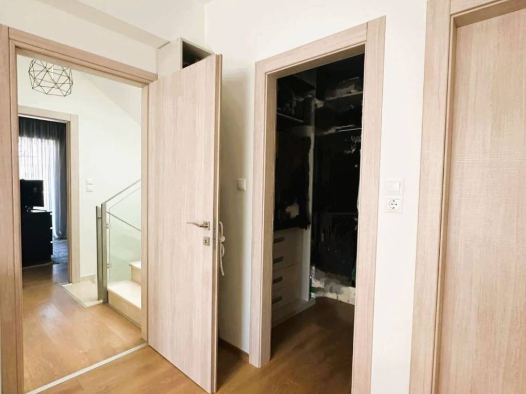 Independent Corner Maisonette 192 sq.m. on 197 sq.m. Plot | Fully Renovated 2023 Unique opportunity! For sale, a fully independent three-level maisonette with a total area of 192 sq.m., on a private plot of 197 sq.m., built in 2004 and fully renovated in 2023. The property is corner, airy, and bright, offering open views and complete privacy. Layout Ground Floor (70 sq.m.) Large closed garage One room and WC Can be fully autonomous with independent access – ideal for use as a separate apartment, guest house, or office Second parking space within the enclosed private yard 1st Floor (61 sq.m.) Modern Italian kitchen by Gruppo Cucine Comfortable dining area Living room with fireplace and three balcony doors Large corner veranda Security door 2nd Floor (61 sq.m.) Master bedroom with en-suite bathroom and walk-in closet (Gruppo Cucine) Two additional bedrooms with built-in wardrobes Main bathroom All bedrooms have balcony access through patio doors Rooftop (35 sq.m.) Accessed via internal staircase Built-in BBQ Potential for a beautiful roof garden with open views Technical & Energy Features Heat pump system with autonomous operation on each floor Three-phase electricity Solar water heater (200L) Oak flooring, marble staircases with safety glass railings Alarm and CCTV system Connected to the main sewage network (no septic tank) No shared/common charges Outdoor Features Fenced private yard and garden area Two parking spaces (1 closed garage + 1 open) Bright and quiet corner position Location & Accessibility Walking distance to local market and public transport Direct access to Attiki Odos (main highway) Only 10 minutes from Athens International Airport 10 minutes from the sea (Porto Rafti) Additional Information Immediately available and transferable Ready to move in – no renovation needed (not even painting) Ideal for a family residence or investment, with potential for two independent living units