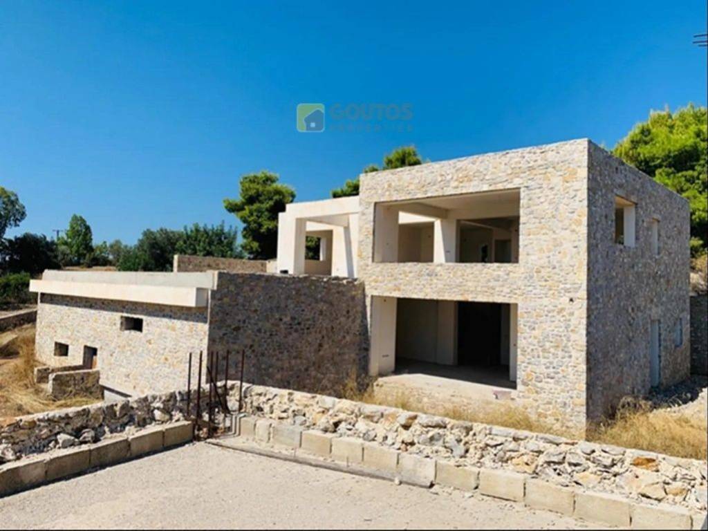 Two-storey detached house of 250 sq.m., semi-finished, for sale, in the area of Petrothalassa, Argolida. The detached house is located on a plot of 2,000 sq.m. just a few minutes away from the sea. It consists of 4 bedrooms, 3 bathrooms, 1 kitchen and 2 living rooms, where the new owners will have the opportunity to choose the materials according to their preferences, in order to complete the residence. This is a modern construction of high standards and aesthetics, with an emphasis on the large openings, which provide an unobstructed view of the sea. In the exterior space of the property there is a 12x6m swimming pool, while an external staircase leads to the roof, where the view is breathtaking. The property is approximately 5 minutes drive-away from the wonderful beaches of the area, 7 minutes from cosmopolitan Porto Heli and 9 minutes from Costa, where there is a direct sea connection to the island of Spetses, while it is 2.5 hours away from Athens. This property presents a unique opportunity with multiple possibilities, as it is ideal both for a holiday or permanent residence, and for investment. Goutos Properties, contact phone: 2109715711, email: sales@goutos.gr, website: www.goutos.gr