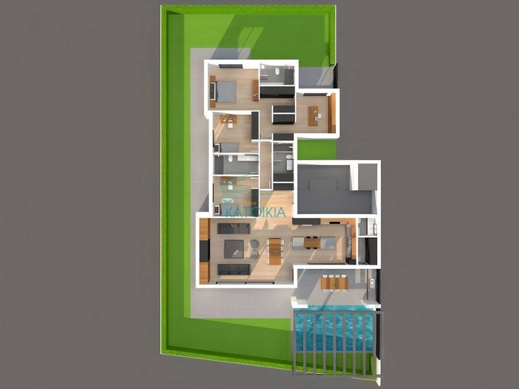 HOLARGOS, Apartment 186 sq.m., painted, 1 level, ground floor, for students, luxurious, for investment, at residential area, year of construction 2026, n/a, with view park, 3 b/r, 1 master b/r, living room, fireplace, 3 bathrooms, kitchen, office, double-sided, front facing, bright, heating autonomous, air condition, floor heating, with energy class A+, with floor type n/a, with n/a joinery, double glass pane, double glazing, pest net, internal staircase, disabled access, electric car charging, door tv, security door, alarm, satellite dish, night discounted electricity, veranda, pets allowed, garden, swimming pool, storage room 14 sq.m., closed garage, 2 open garages, code 58324