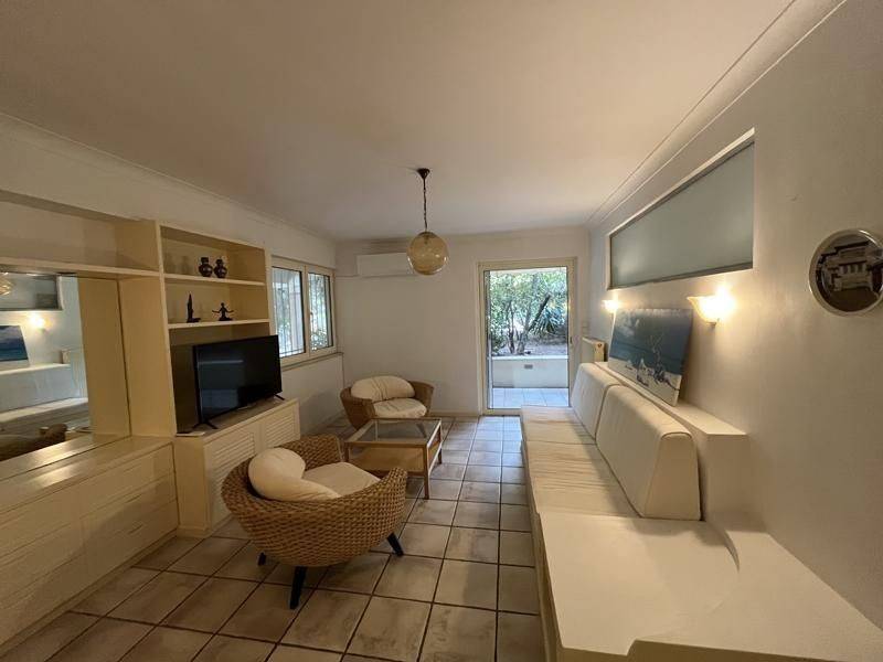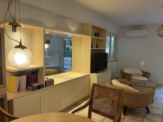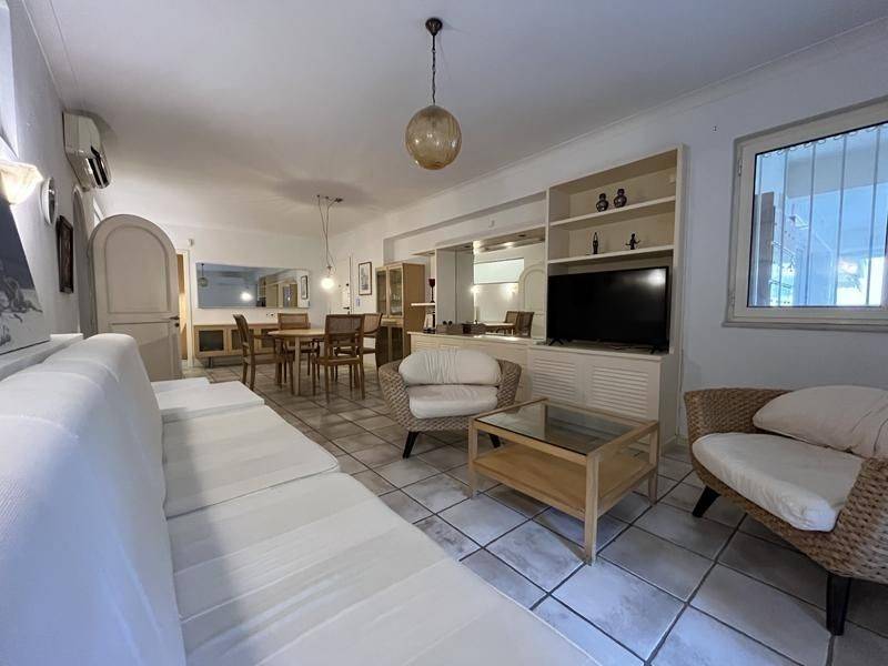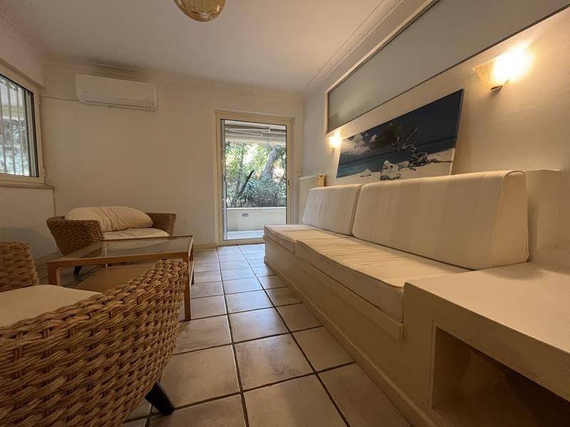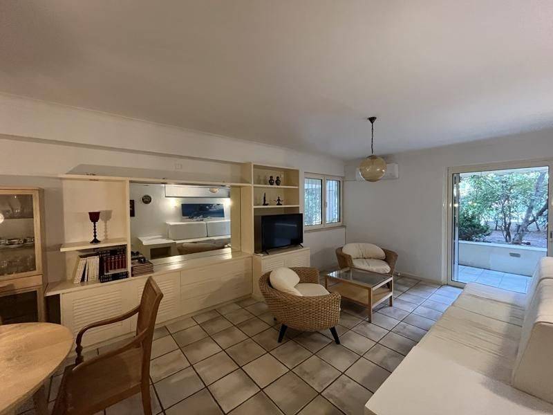 Vouliagmeni, Kavouri - Apartment 85sqm fully furnished, bedrooms 2, levels 1, ground floor, renovated, year built 1985, renovation year 2015, energy class Exempt, living room, kitchen, bathroom, heating type: autonomous (thermal store), air condition, parking open space, quiet, dual aspect apartment, frontage, electric roller shutters, large balconies, tents, garden, aluminum frames, double glazed windows, door screen, ceramic tiles floors, separate kitchen, night electricity discount rate, secure door, alarm, barbeque, residential zone, sea front (1st row), price is negotiable, short term lease, close to sea (up to 200m), close to bus stop (up to 100m), close to park (up to 200m).
