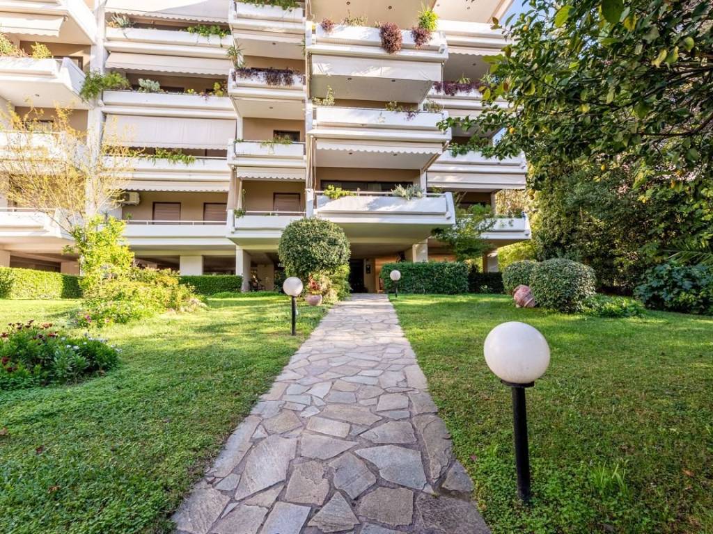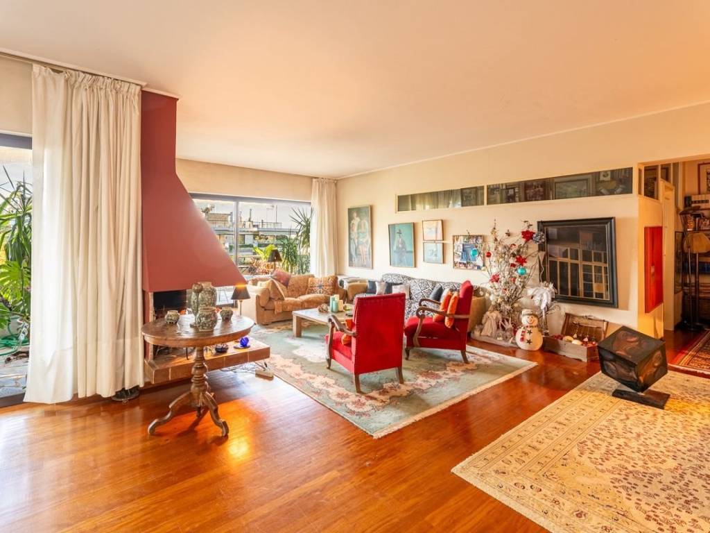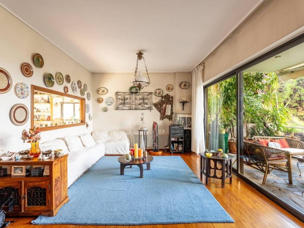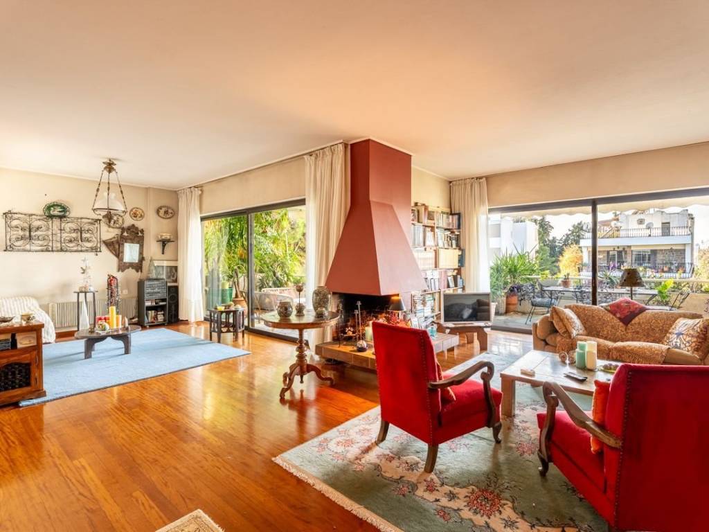 Spacious and airy apartment with a total area of 175 sq.m. in an excellent location in Agia Paraskevi. The apartment has 2 entrance doors. The main entrance welcomes you to a spacious and bright living room with a fireplace, ideal for moments of relaxation and warmth, which has access to two comfortable and wide balconies with unlimited views. Next to the living room one can find a beautiful and cozy office space with its own smaller balcony, which can remain as it is or be opened up to further enlarge the central living room area. On the left, right where the second entrance is located, there is a hallway with a WC and a kitchen. The hallway leads to three comfortable bedrooms, all with access to terraces, and a large bathroom. The apartment is located in an extremely well-maintained apartment building with a lovely large garden, has a closed parking space, storage room, and is close to the market, public transport, schools, and sports facilities. Due to its layout, it offers many possibilities for remodeling by the new owner and is an excellent choice for those seeking elegance and comfort. Agia Paraskevi is a beautiful and quiet urban suburb with a very good quality of life. It is ideal for families as it has many parks and playgrounds and is within walking distance of many international schools such as Deree / Pierce College and Franco-Hellenique Lycee. Two popular activity and market centers are the main squares (Agia Paraskevi square and Agios Ioannis square), around which various commercial leisure interest places are gathered as well as cafes, elegant restaurants, shops and banks. Accessibility: It is located very close to Attiki Odos which is the Athens’ Ring Road, and is accessed by 3 Metro stations and 2 Suburban Train stations. Several buses serve destinations in neighboring suburbs as well as in central Athens. The airport is just a 20 minutes drive away and the Motorway is a 12 minutes drive away. Investment Dynamics: The ideal choice for excellent living near the city center in a luxurious urban area, with good return on investment and living in a green environment.