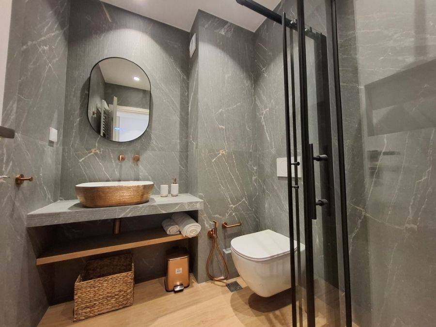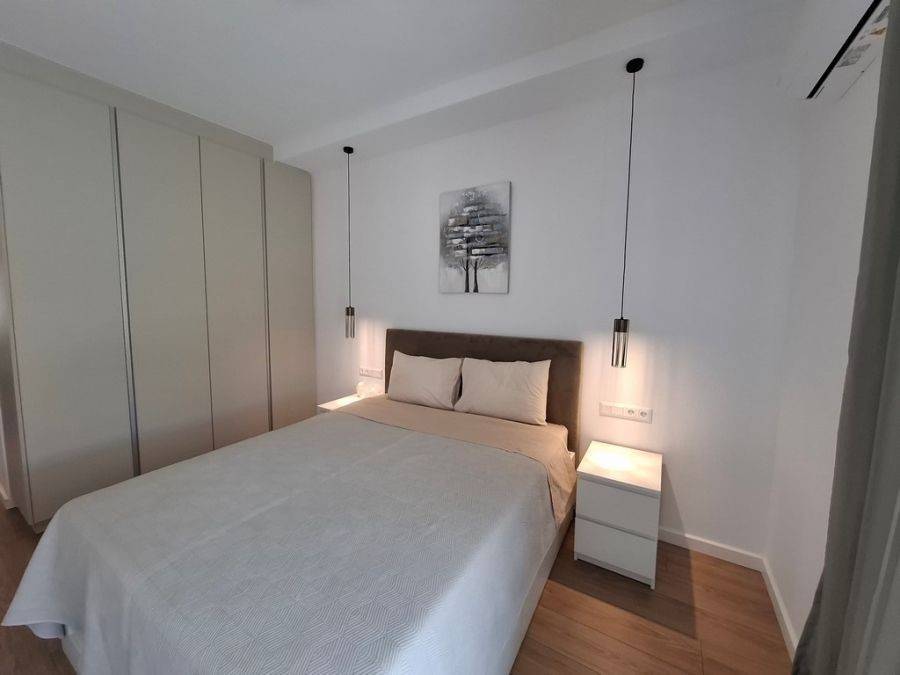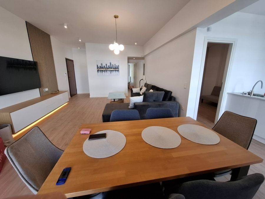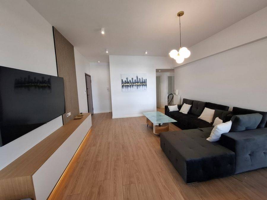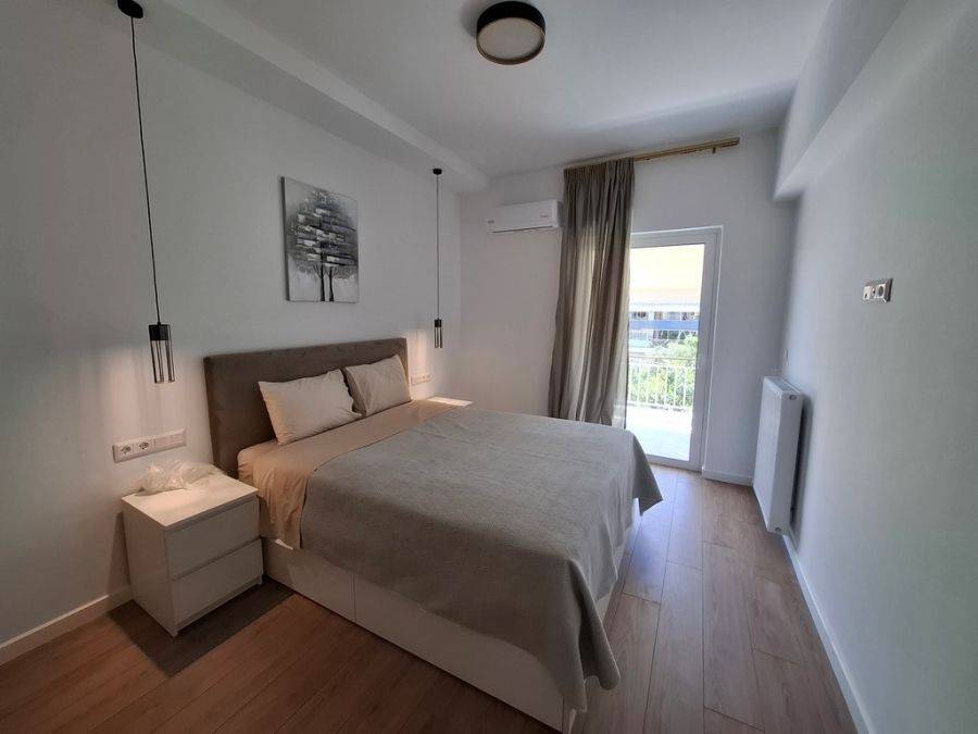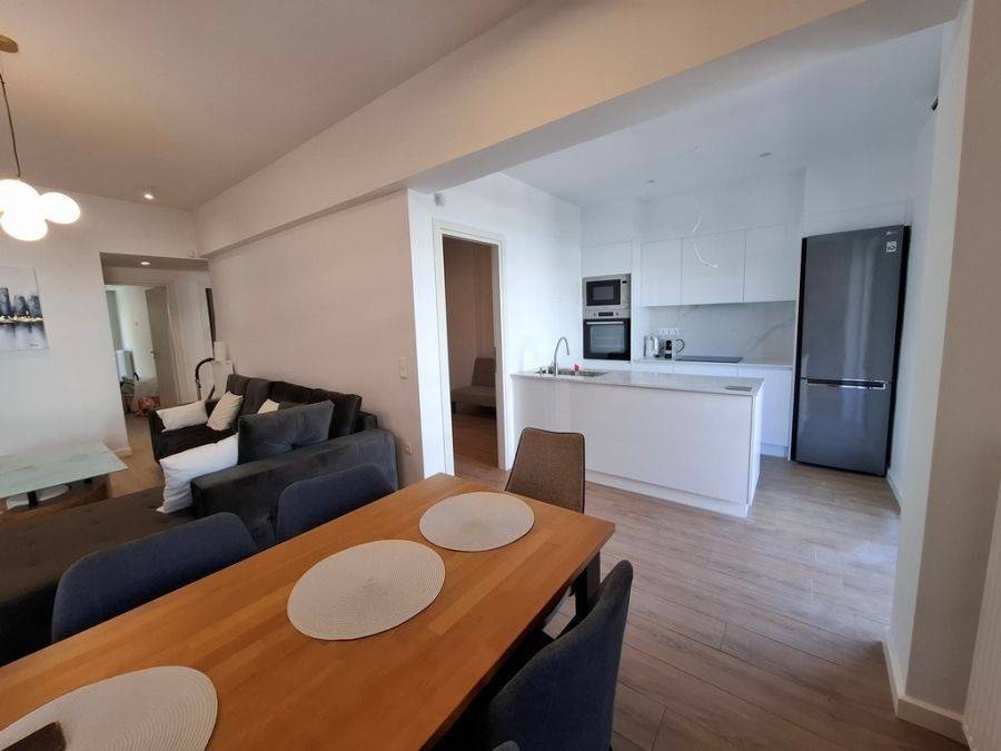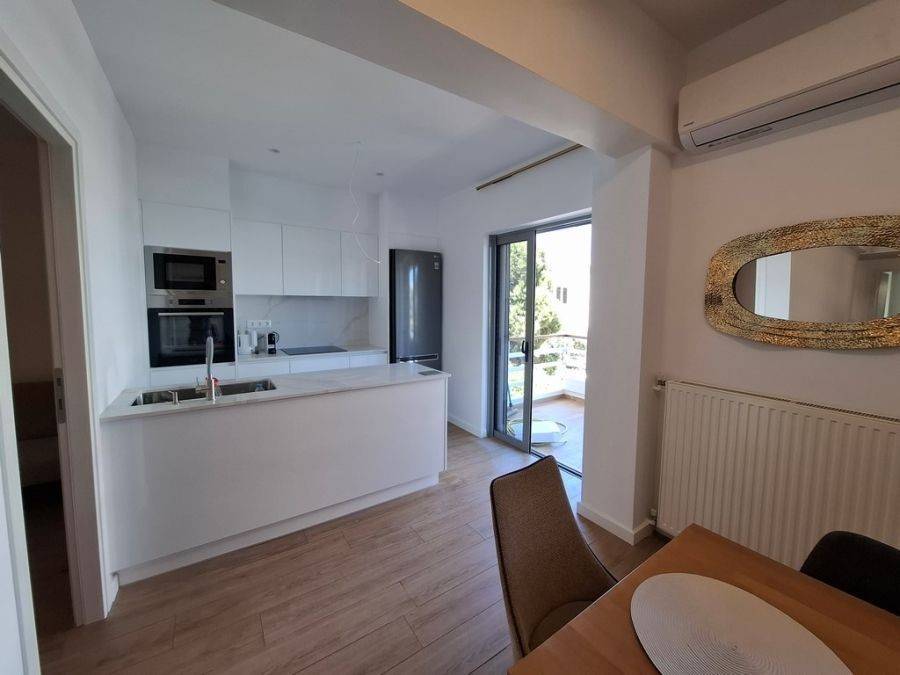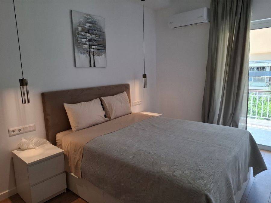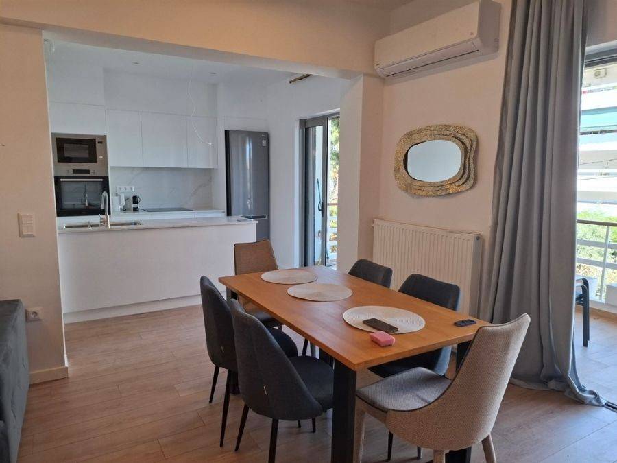 In the heart of Glyfada, at Esperidon Square, a fully renovated and furnished first-floor apartment of 120 sq.m. is available for rent. The property features three bedrooms, one of which is a master with its own en-suite bathroom, two bathrooms in total, a functional and elegant kitchen, and a spacious living area with a fireplace that adds warmth and comfort to the space. The apartment boasts wooden floors, aluminum window frames with insect screens, and large verandas with awnings that offer relaxation in a bright, front-facing environment. It is equipped with all modern amenities, including an elevator, security door, alarm system, video intercom, air conditioning, boiler, and autonomous natural gas heating. A private parking space is also included. The location is truly unique—just steps away from the sea, with direct access to public transportation and the tram, and within walking distance from the market, shops, and restaurants.
