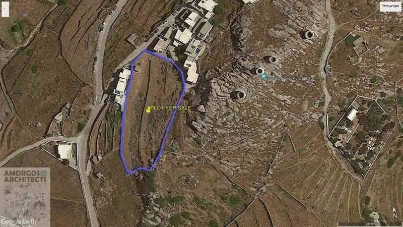 Οικόπεδο 1.230m2 εντός του οικισμού της Χώρας Αμοργού, με πανοραμική θέα στην θάλασσα και τον οικισμό. Επιτρέπεται ανέγερση οικοδομής έως 200m2.