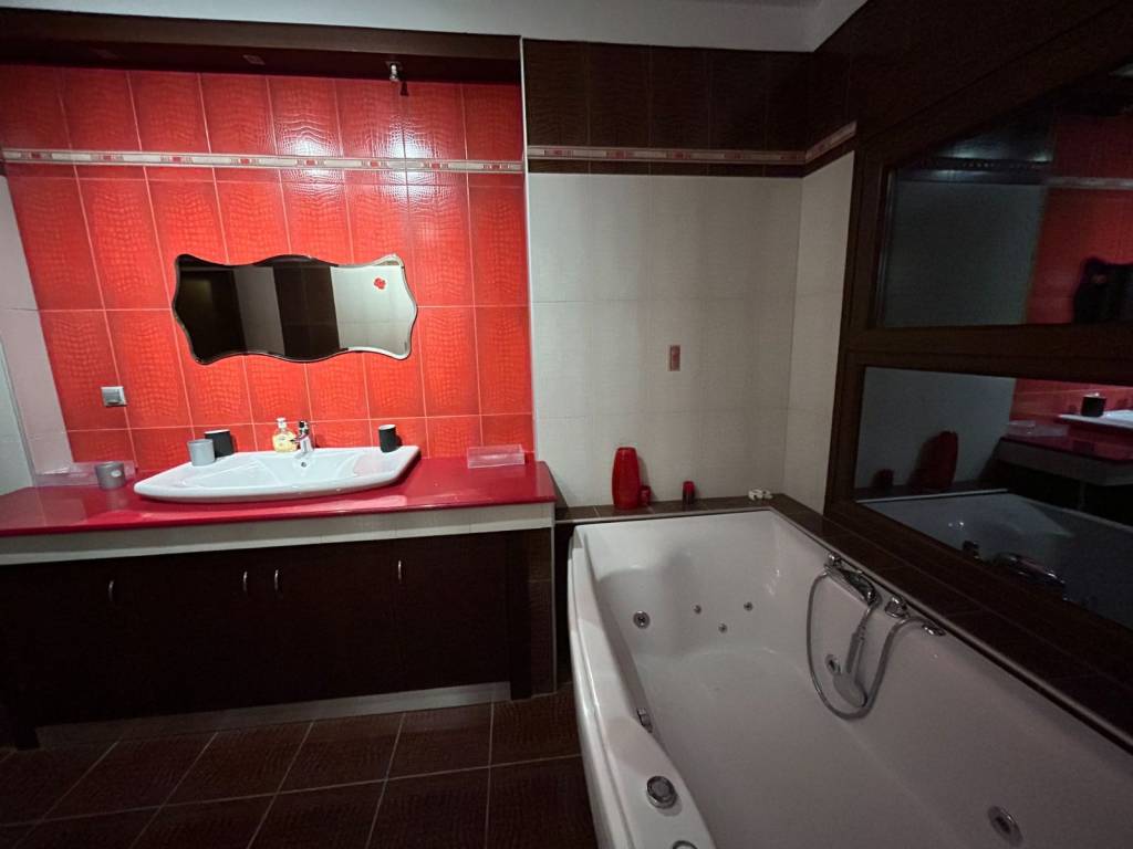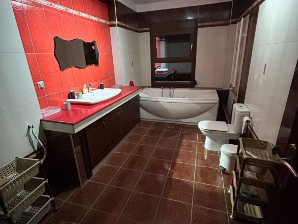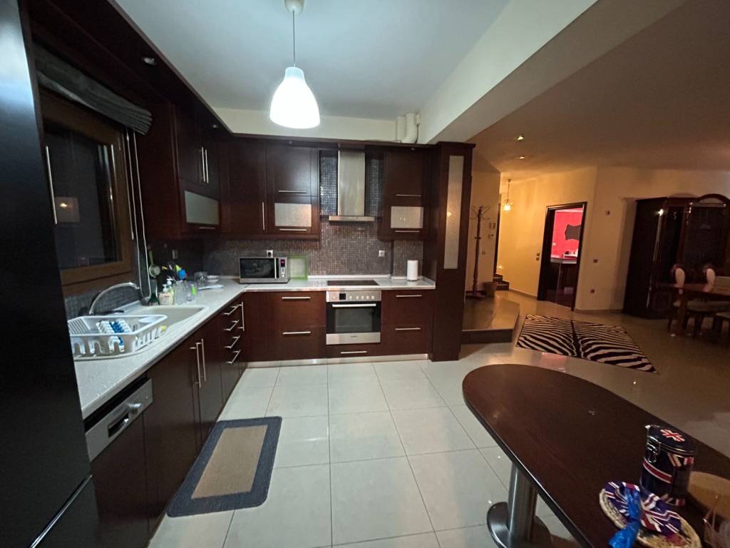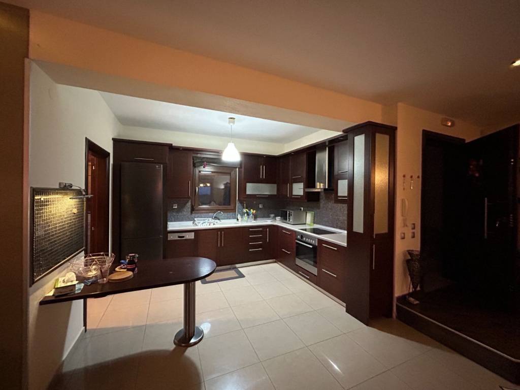Available for rent luxurious first floor apartment within the settlement of Arnea, Chalkidiki, in a quiet neighborhood with available parking spaces. The apartment consists of an open plan area of two living rooms, fireplace, dining room area, a kitchen-living room, a second independent kitchen, three bedrooms, two bathrooms and an internal storage room. The main bathroom also has a Jacuzzi. The apartment is bright, with large balconies with views. Available underfloor heating with low consumption.