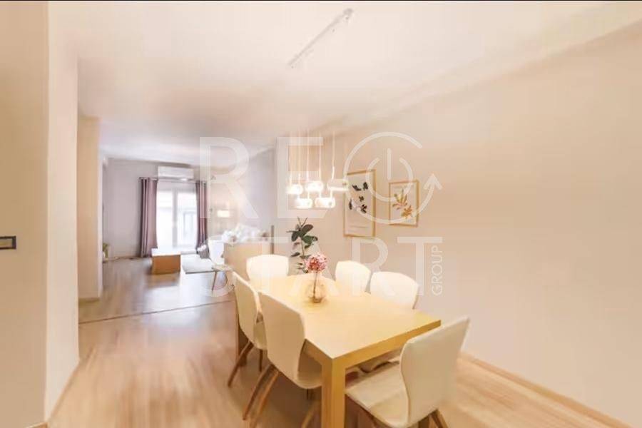 Exarchia - Apartment 90sqm bedrooms 2, levels 1, upper floor (90sqm, 2 bedrooms, living room, dinning room, kitchen, bathroom), fully renovated, year built 1965, renovation year 2017, energy class D, living room, hall, kitchen, bathroom, heating type: autonomous (air condition), quiet, luminous, internal plot, storage space, balconies, elevator, thermal shut-off frames, double glazed windows, wood & tile floors, separate kitchen, secure door, luxurious, satellite, internet, residential zone, north-western orientation, access from asphalt, close to metro/train (up to 500m), close to sports facilities (up to 500m), close to bus stop (up to 100m), close to market (up to 100m), close to park (up to 200m), close to square (up to 500m), close to school (up to 200m), close to entertainment (up to 100m), close to university/college (up to 500m), close to super market (up to 200m). Fully renovated mezzanine apartment, 200 m from Pedion Areos and 500 m from Exarcheia Square. It consists of 2 bedrooms, a large living room and dining area, a large full bathroom, a storage room inside the apartment and a terrace overlooking the uncovered garden. The total, thorough renovation was carried out in 2017 in the electrical and plumbing installations, changing floors, new frames, new kitchen, new bathroom and sanitary ware, false ceilings, interior and exterior painting. It has autonomous heating with air conditioners, water heater, new thermal break aluminum frames with double glazing, roller shutters and security door. Leased until the end of October 2027