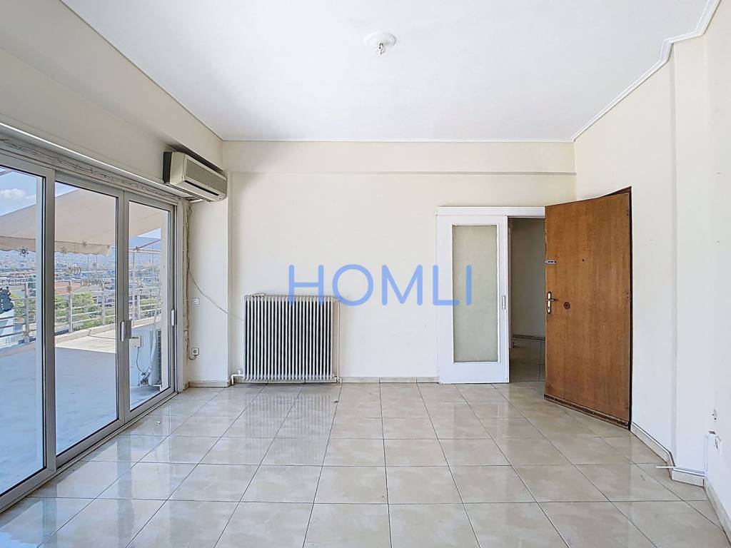 Floor apartment with panoramic views and a large perimeter balcony, near the ISAP station ''Neo Faliro''. Constructed in 1973, it is bright and airy. It has oil central heating, aluminum frames with double glazing, awnings and an elevator. It is located in a prime location, close to schools, sports facilities and 15 minutes from the University of Piraeus. HOMLI, property code 23171, contact us by phone at 2104446498.